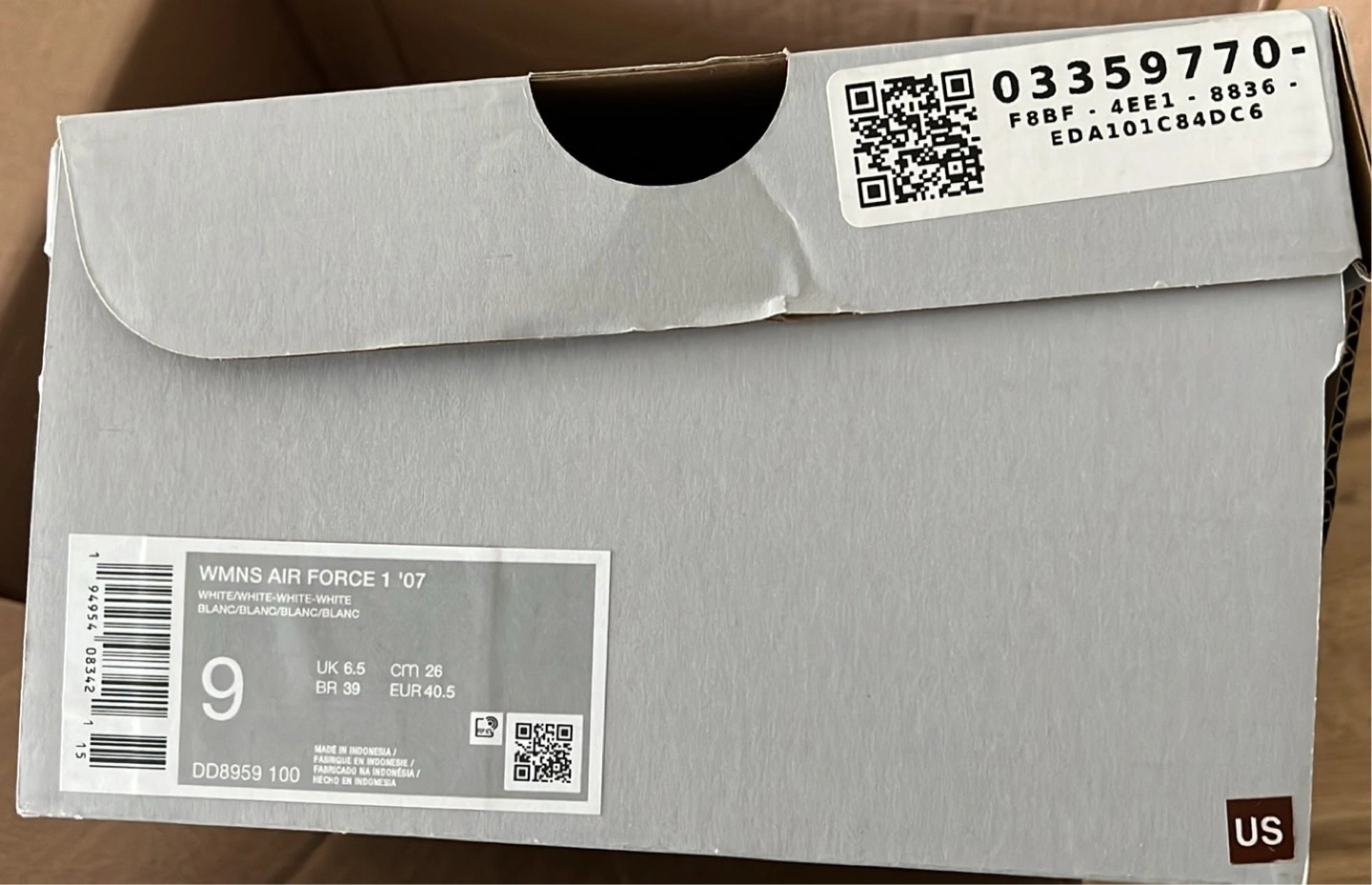 Brand new, never worn, women's Nike Air Force 1 '07 sneakers. Classic white leather design. Size UK 8.5, EUR 40.5. Comes in original box.