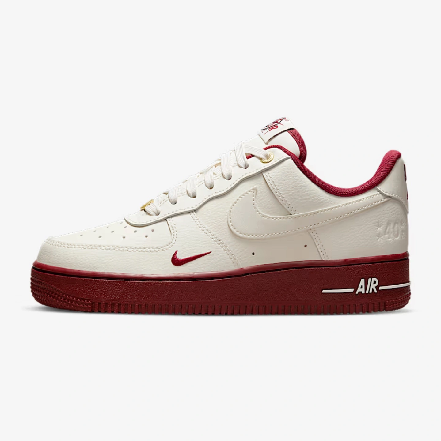 Selling a pair of Nike Air Force 1 Low celebrating the 40th Anniversary! The shoes feature a cream-colored leather upper with burgundy accents on the sole, lining, and mini Swoosh. These are a stylish and classic addition to any sneaker collection!