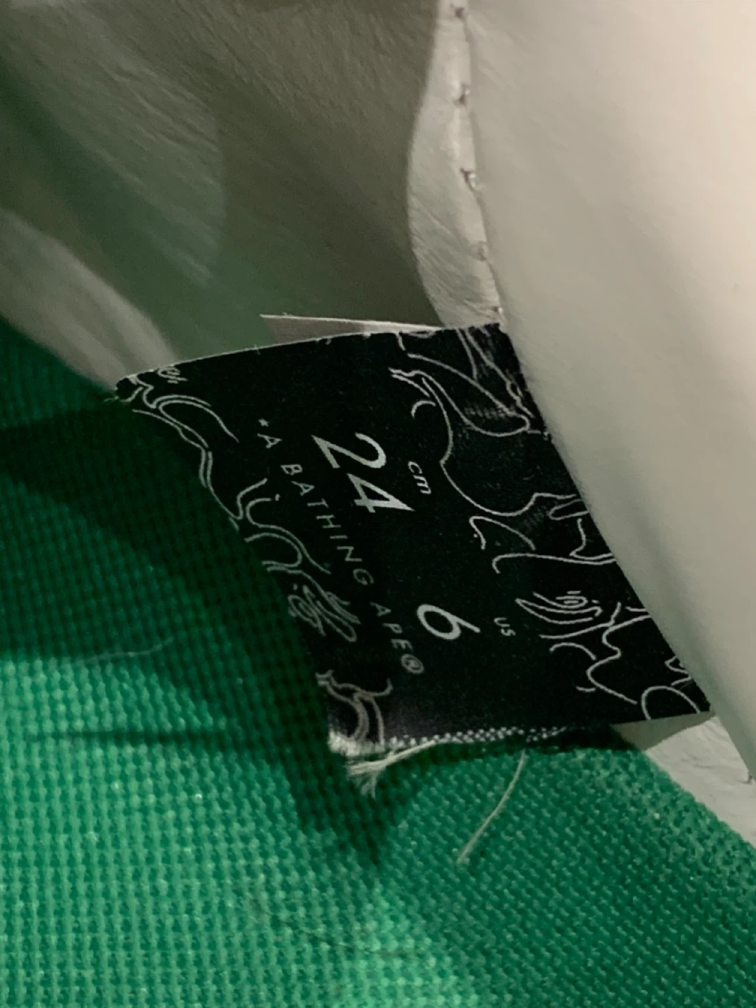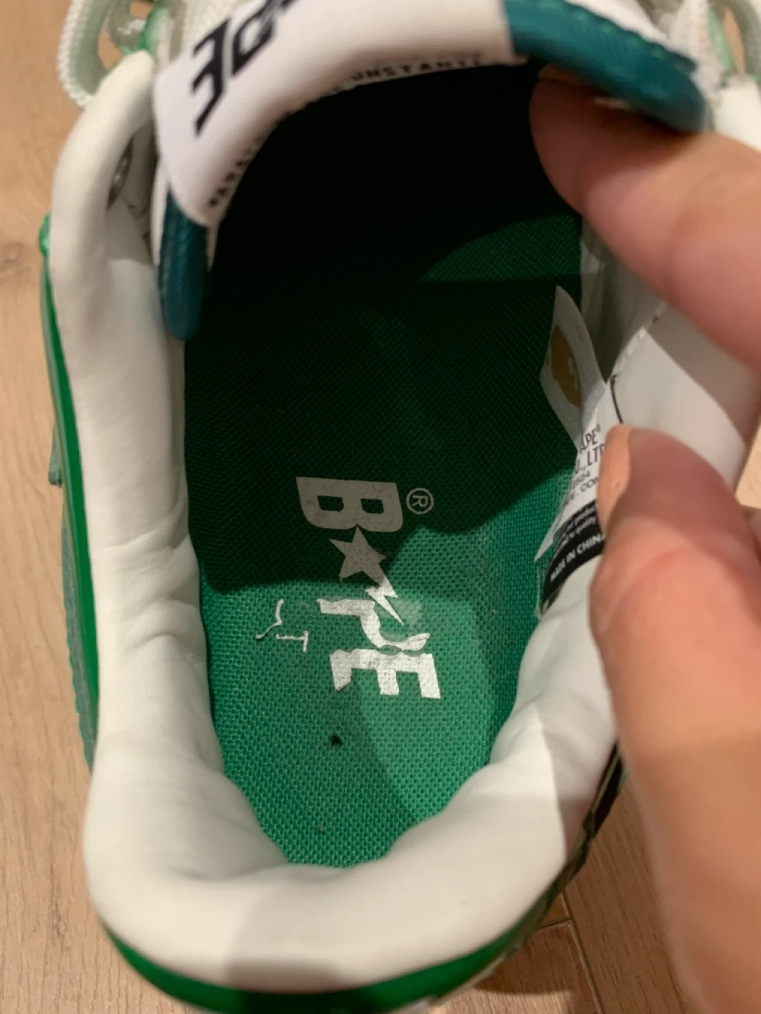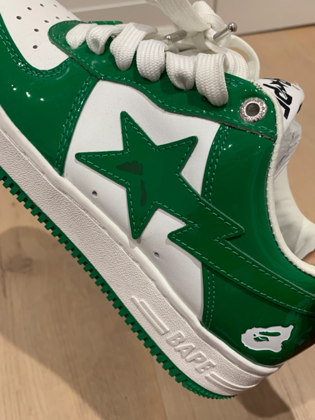 456Selling a pair of BAPE STA Low sneakers in green and white. They're in great condition and are a US Men’s size 6/ Women’s Size 8. A Bathing Ape is dedicated to quality products!