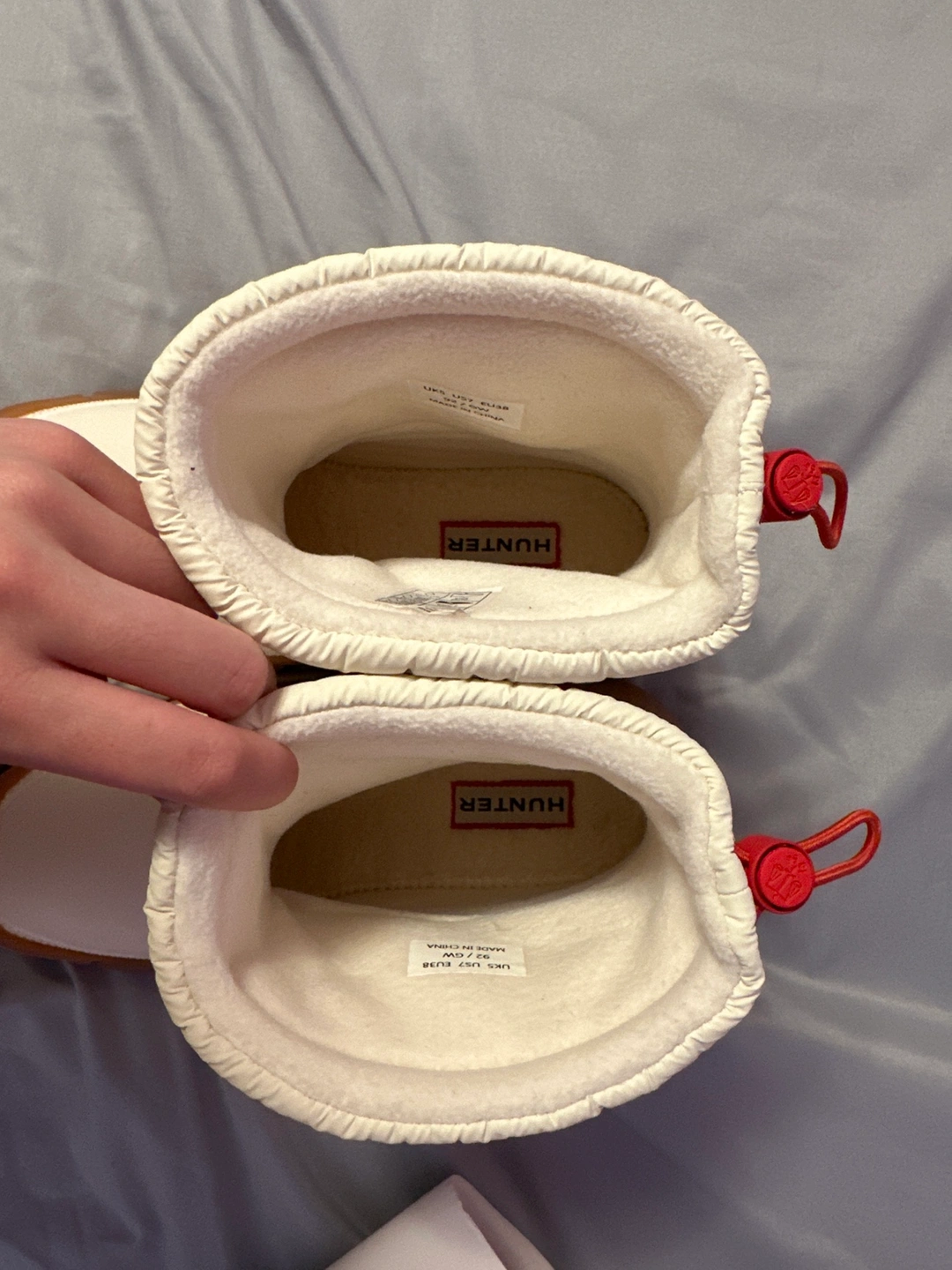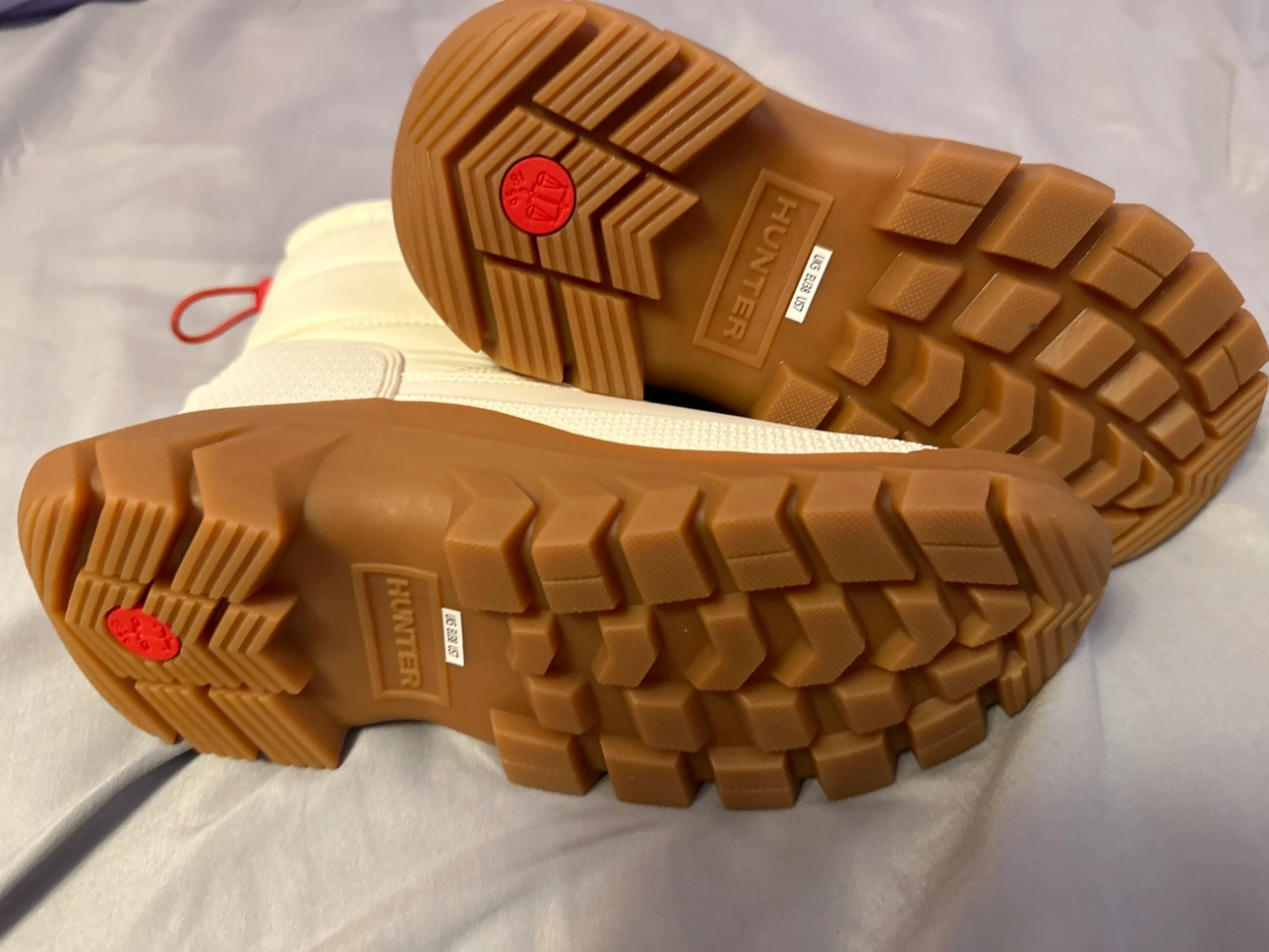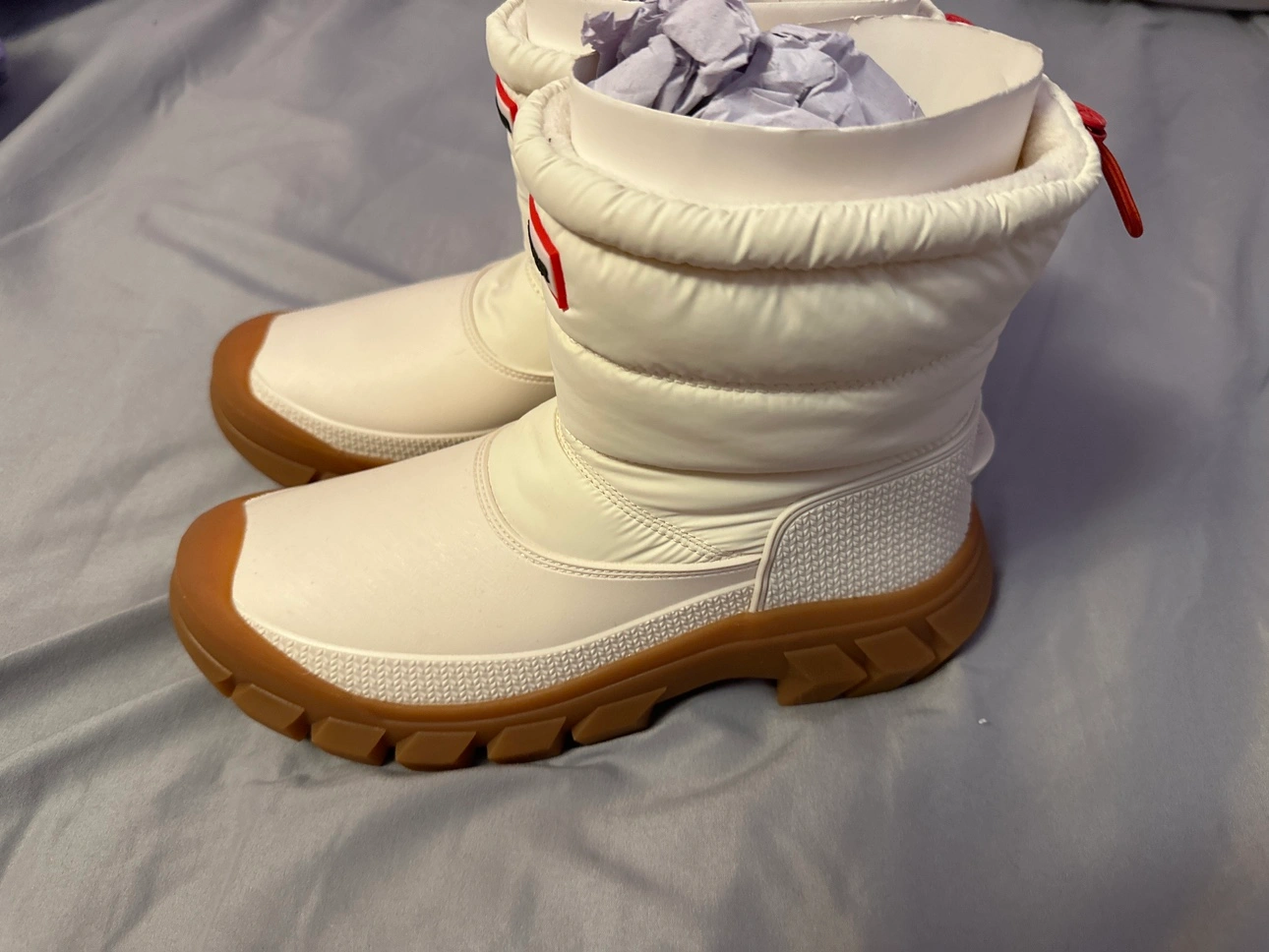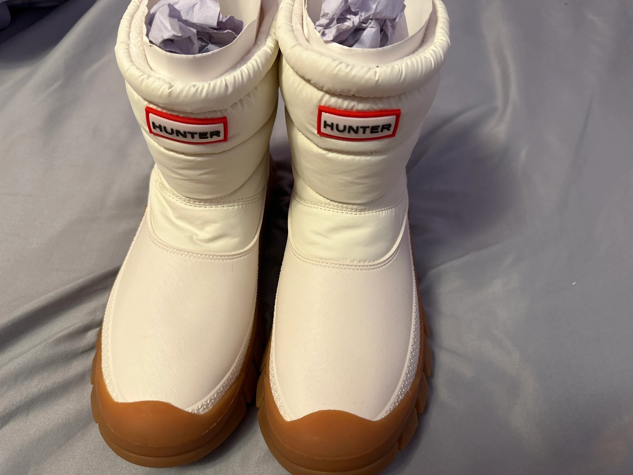 -New 100%/ No box -Send message before purchase -Don't let the cold weather quell your sense of adventure—get the new Intrepid Snow Boot by Hunter! Rated for temps as low as -4°F, this winter-ready boot features recycled nylon uppers with a waterproof molded TPU shell, recycled polyester fleece lining for warmth, and high-grip rubber outsole for premium traction. Color: White Willow/Gum Style ID: 260033 If you buy 2 items you will get 10% off