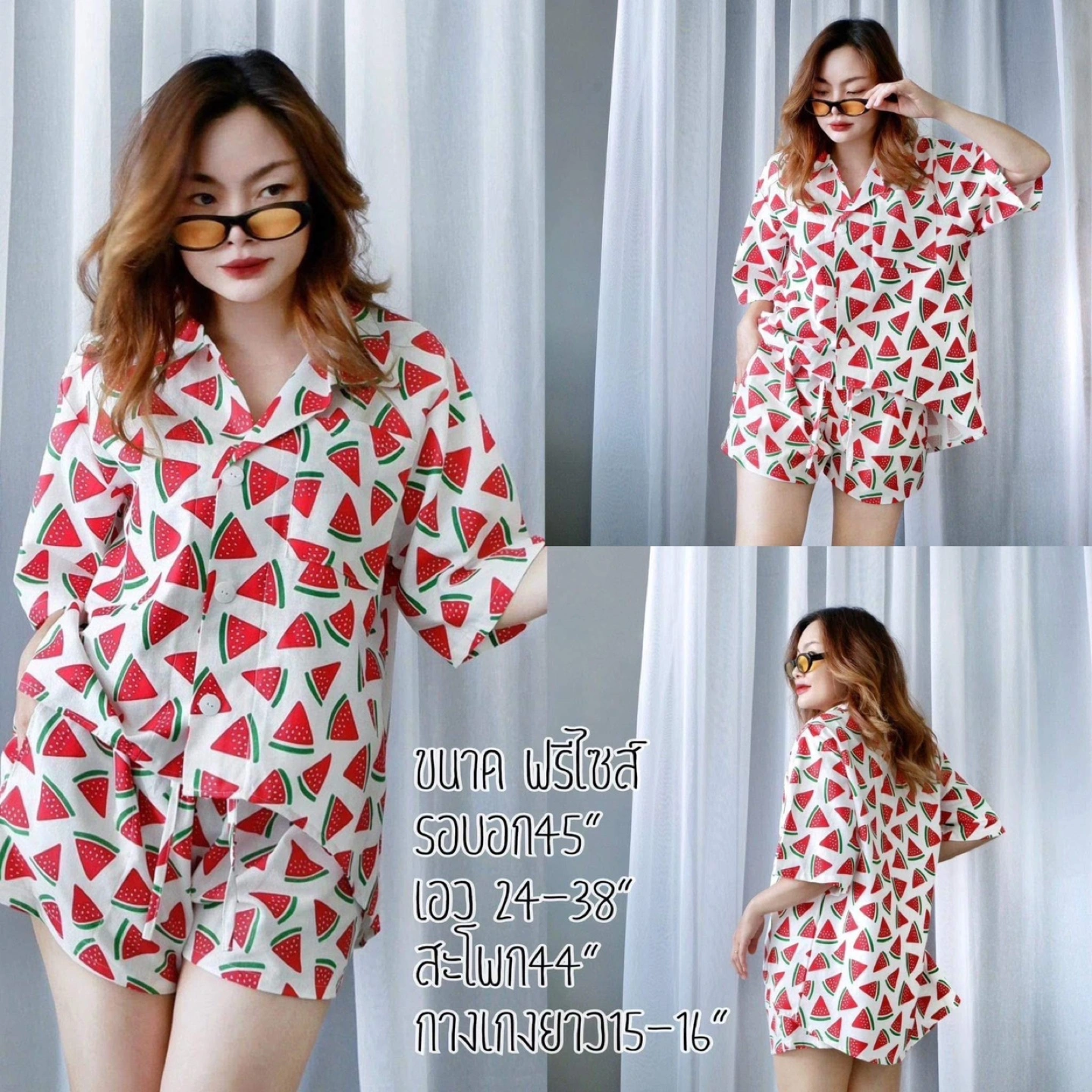 Women's Summer Pajama Set, Watermelon, Orange, or Blue Pattern