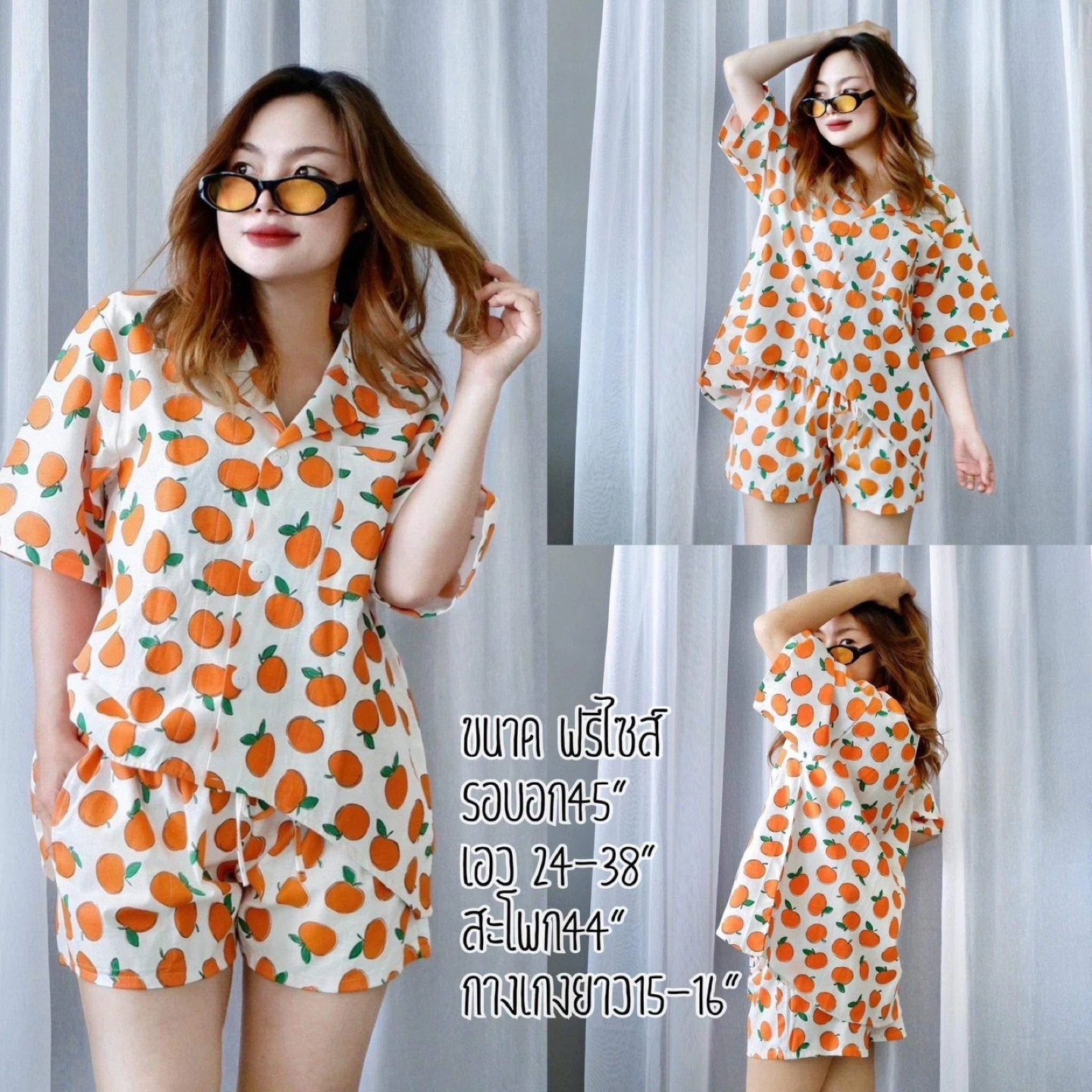 Cute two-piece set. Short-sleeved button-up top and matching shorts. Various fun prints available. Relaxed fit. Perfect for summer.