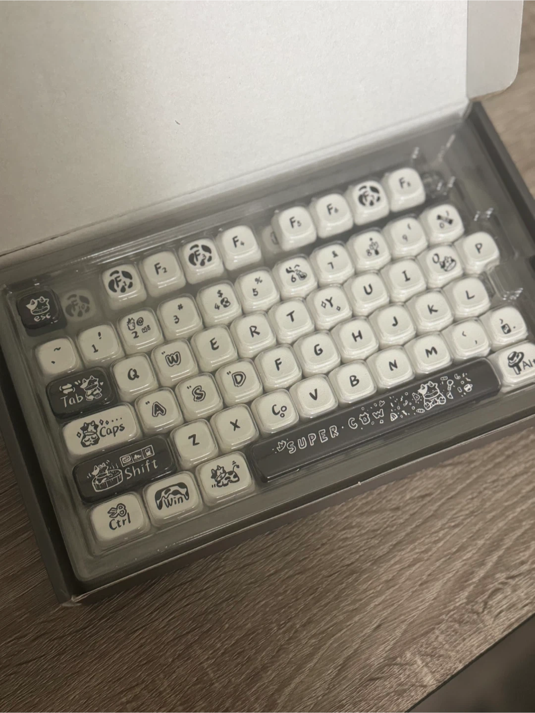 Selling a brand new Womier keycap set! It comes in its original box and features a unique design. These keycaps are perfect for customizing your mechanical keyboard with a fresh, stylish look