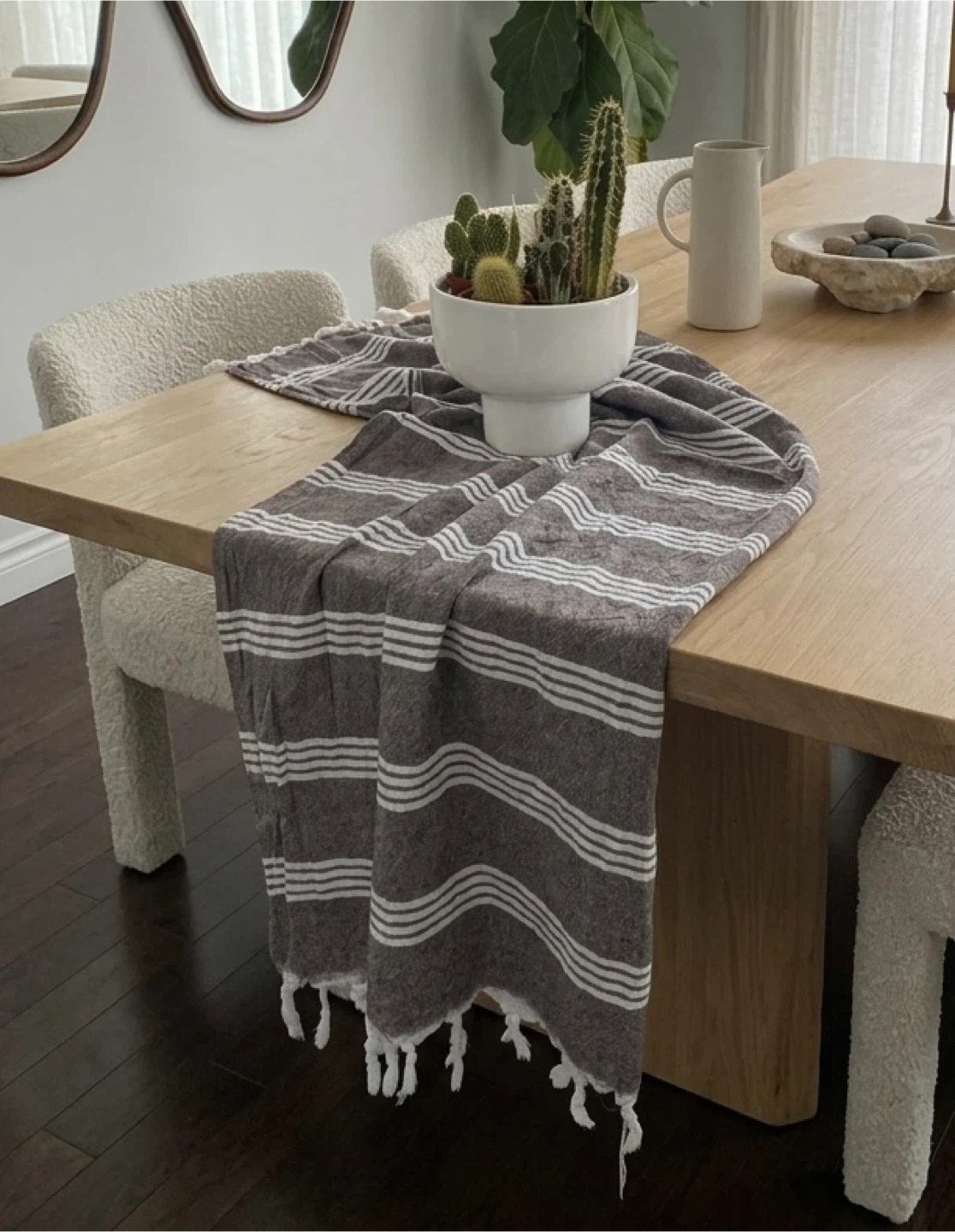 Brown and White Striped Turkish Towel