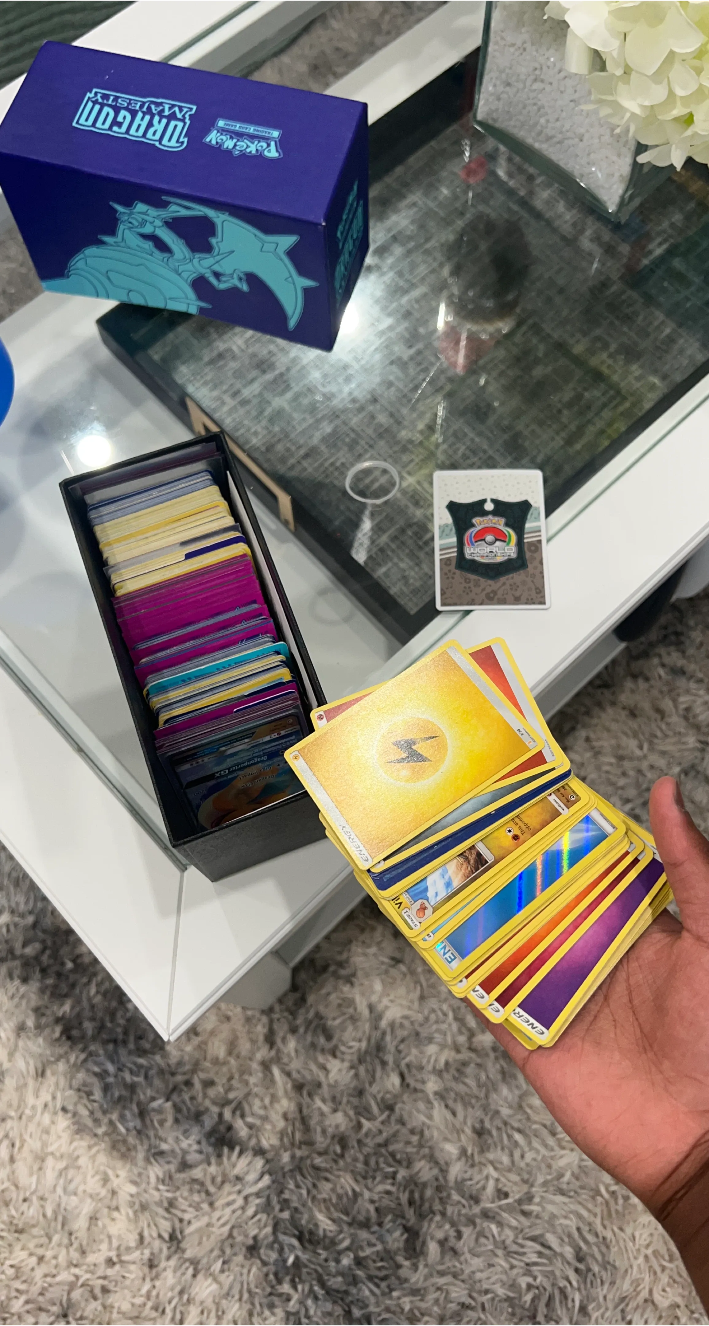 Includes a box of Pokémon cards from the Dragon Majesty set. Cards feature various Pokémon and energy types. Selling as a collection.