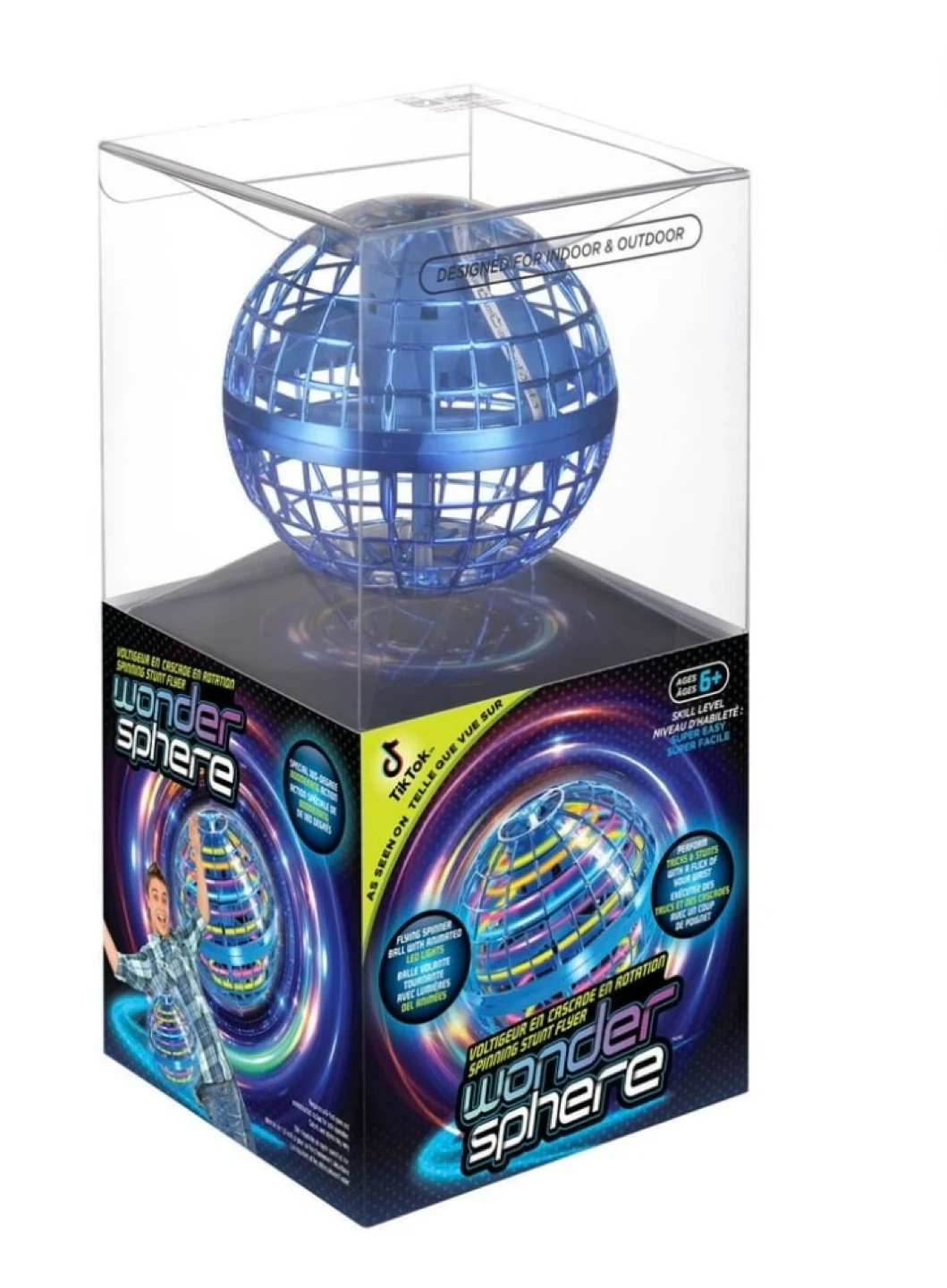 Check out this Wonder Sphere flying spinner ball! It's designed for indoor and outdoor use, and is suitable for ages 6+. It's a really fun toy! 😊