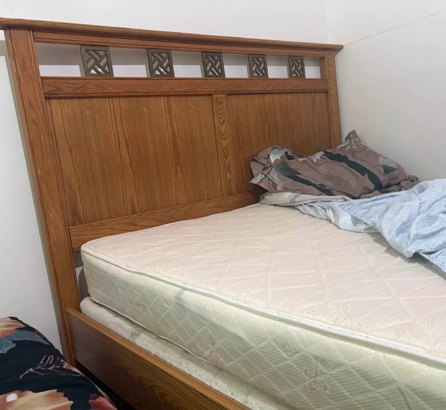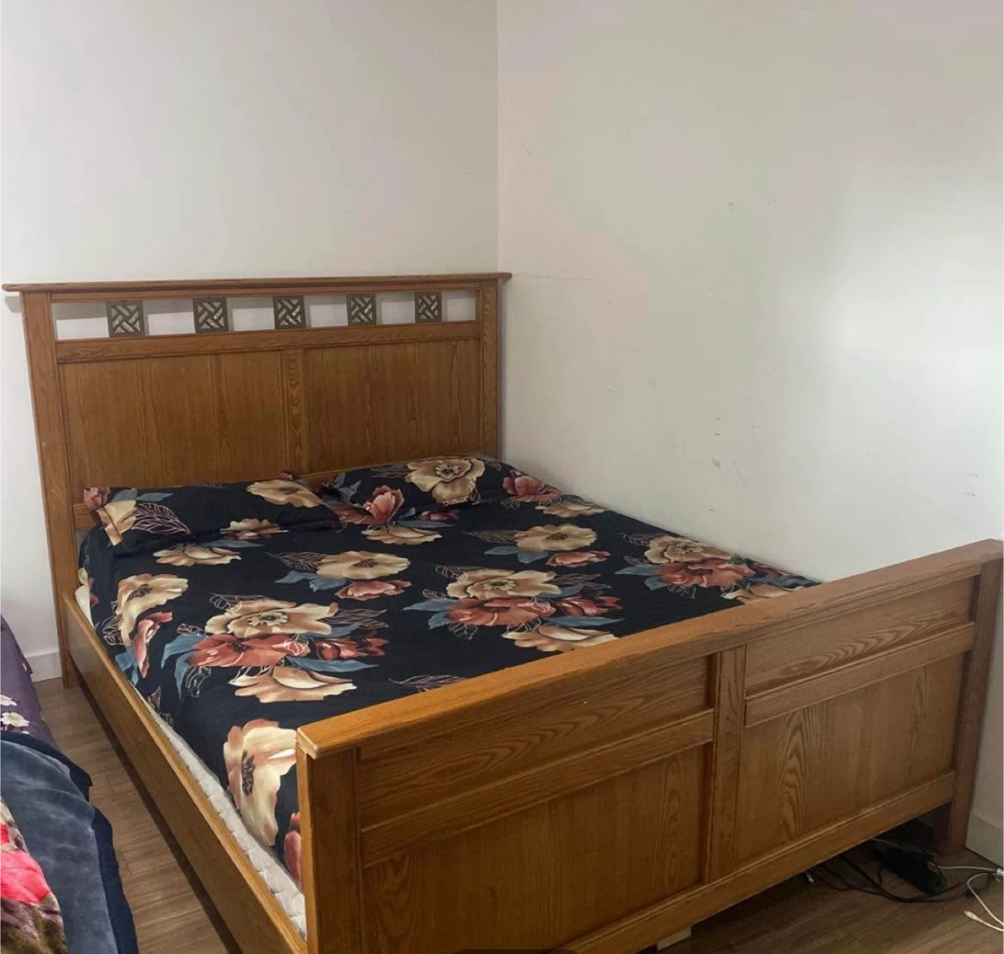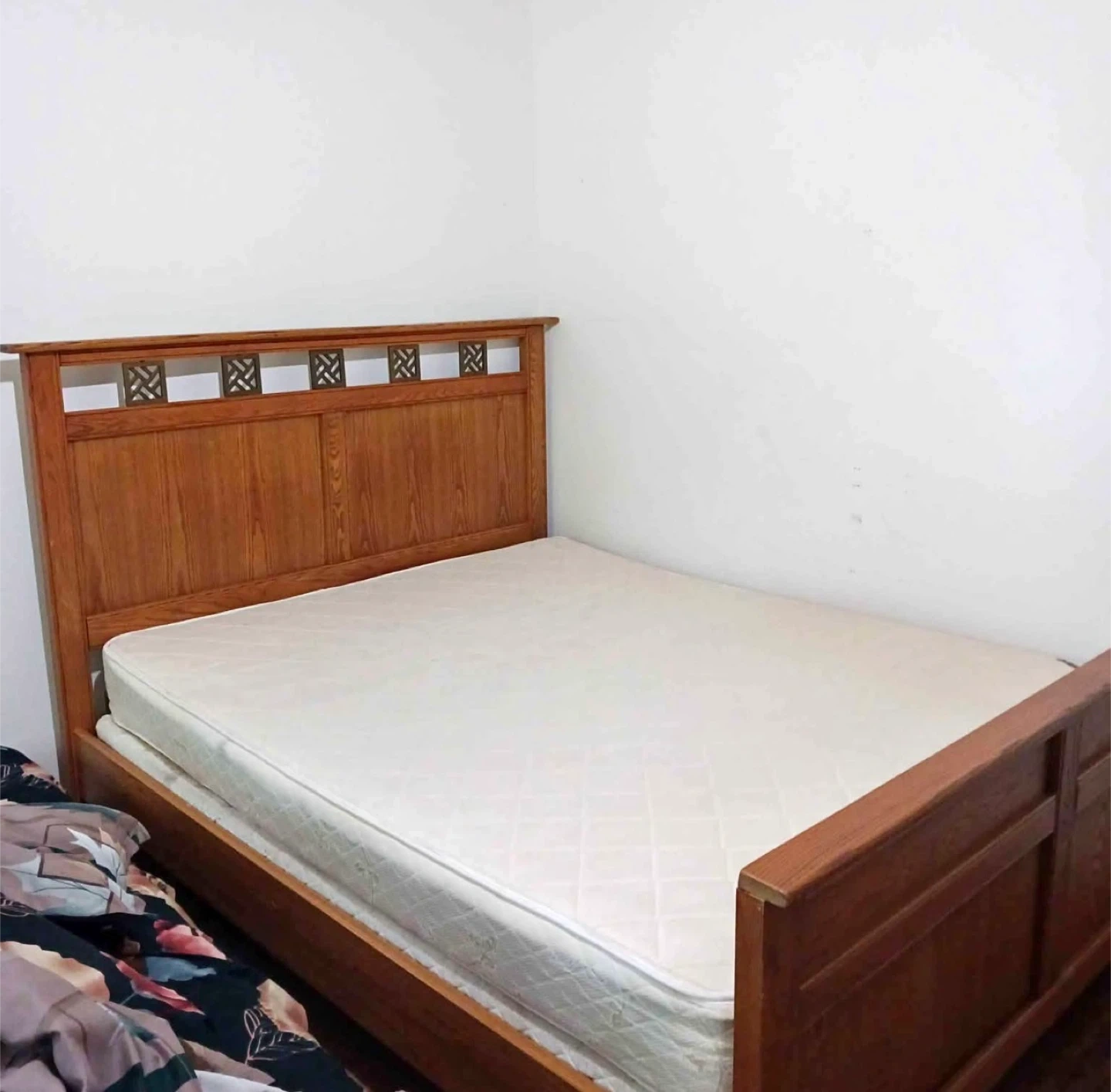 5Selling a wood bed frame in good condition. It has a classic design that would look great in any bedroom. The frame is sturdy and well-built, ready for a new home! And spring box is free with it