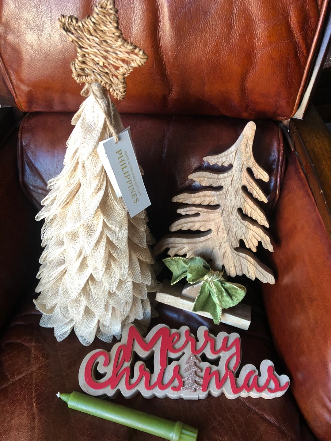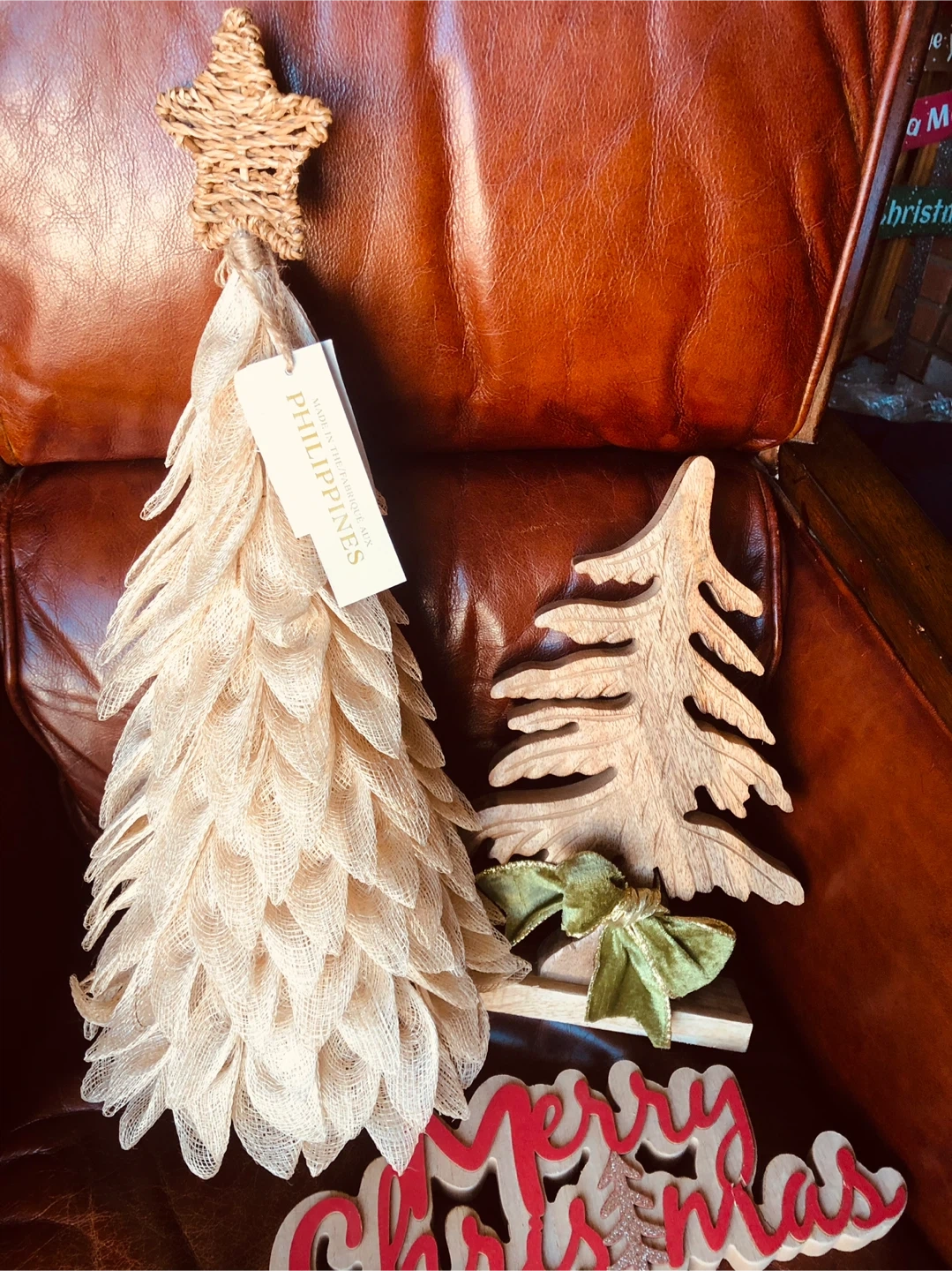 479🌟ONLY $10!!!🎄Selling Rustic or Country Christmas tree decor! There's a burlap tree with a wicker star on top (great for boho decor too) and a solid wooden tree with sage green velvet bow. ✨PLUS A Merry Christmas Wooden sign , sage green taper candle and a holiday wreath with matching sage colored bow and faux cedar bows!!! 🌲Perfect for getting into the holiday spirit! ***Check Out My Other Ads for More Fantastic Items, Great Deals and Even FREE Stuff!!!***