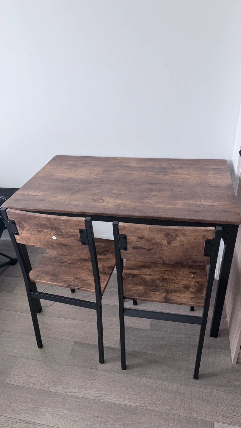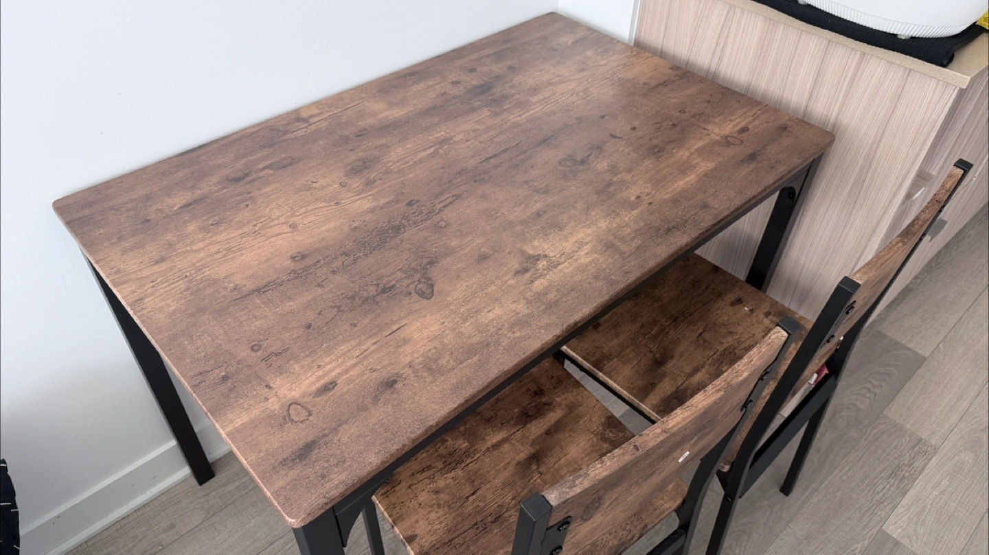 20Selling a dining table with two matching chairs. The set features a wood-look finish and a black metal frame. It's a great size for smaller spaces like apartments or condos. The table and chairs are in good condition and ready for a new home! Here is the link of Amazon: https://a.co/d/1Tx6z5m