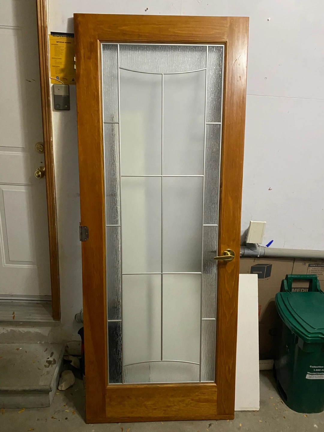 65Selling a wood-framed interior door with a decorative glass panel. It's in great condition and ready to be installed. Perfect for adding a touch of elegance to any room! The dimensions are 32x82.