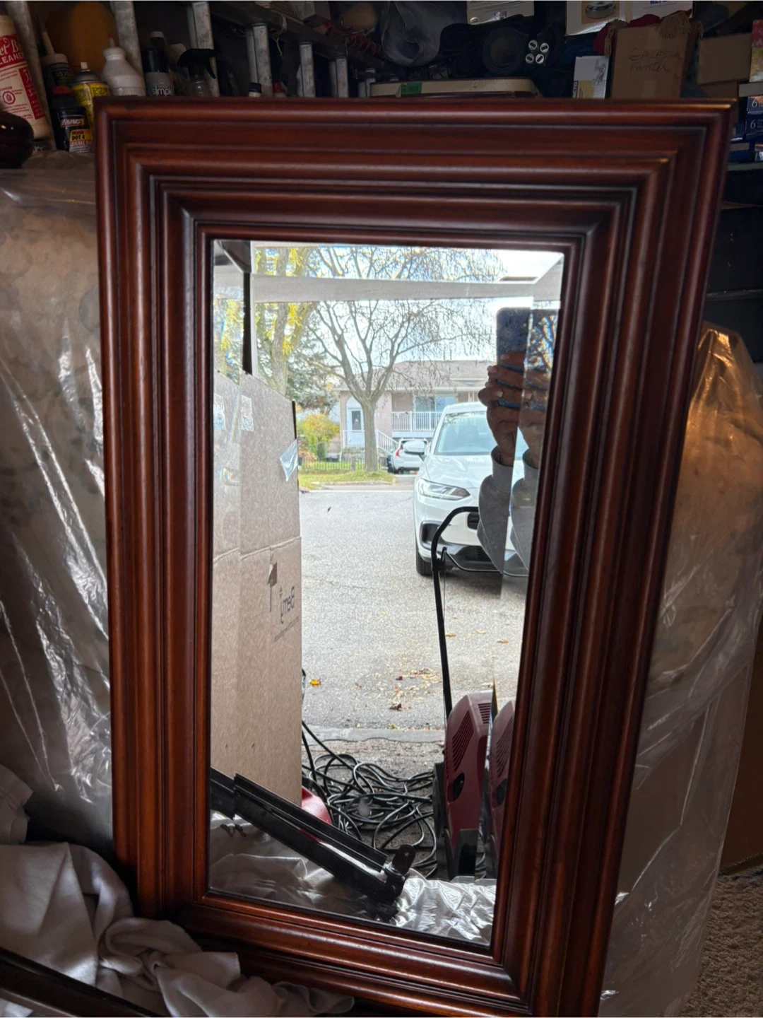 Selling a wood framed mirror. It has a nice, classic look that would fit well in many homes. It's in good condition and ready to be picked up