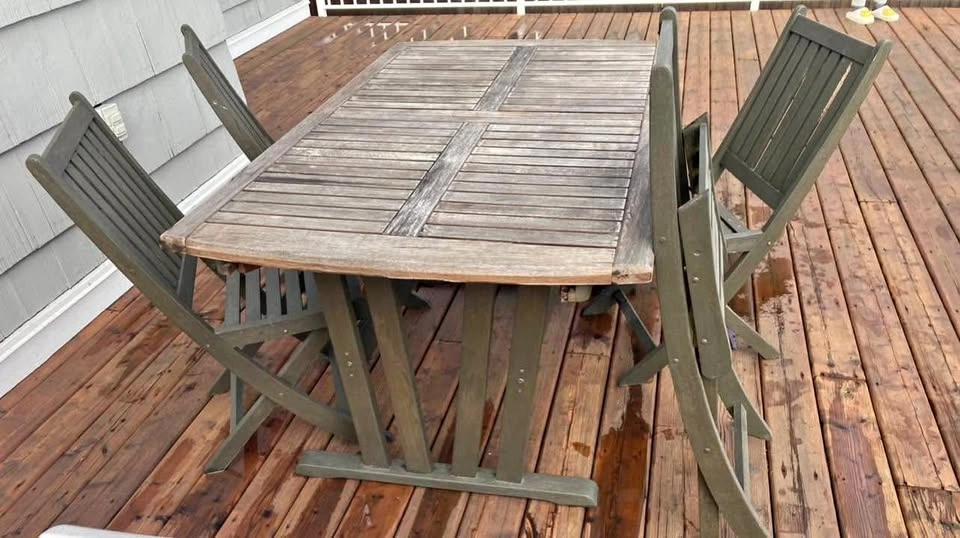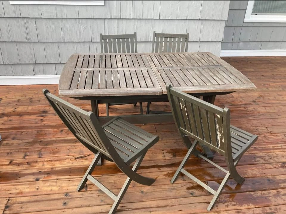 Wood outdoor Dinang set 4 people (foldable chairs) could use a bit of sanding and sealer, hence the price. Unfinished grandpa project. Pick up in New Westminster
