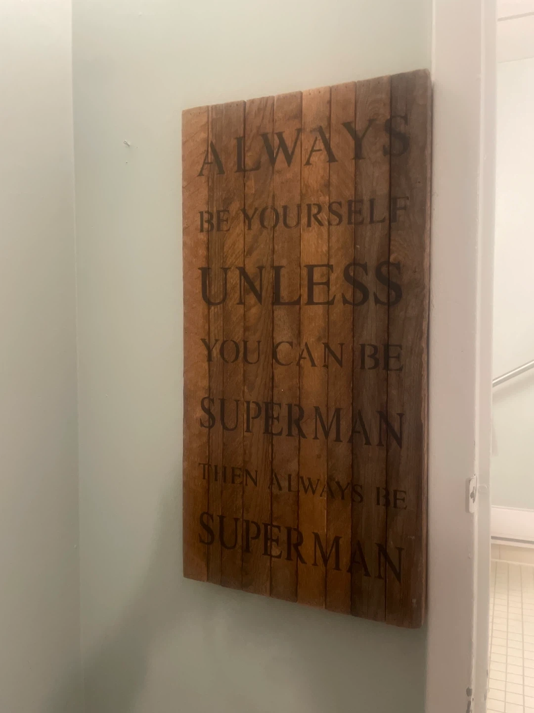 128A fun wooden sign that reads: "Always be yourself unless you can be Superman. Then always be Superman"