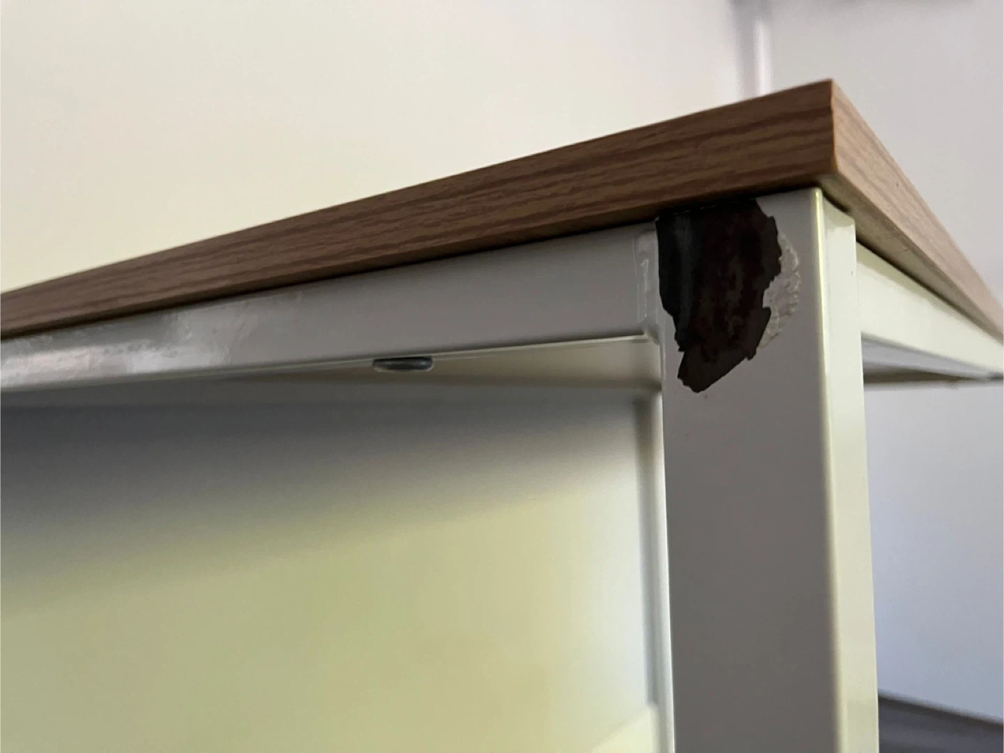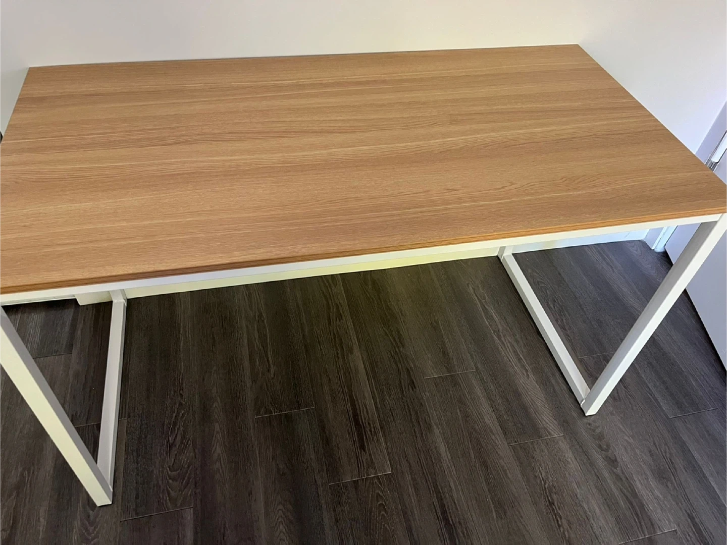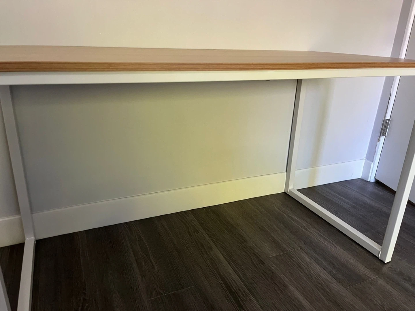 28Selling a desk with a wood top and a white frame. Great desk for work or study, It’s spacious, in good shape, and only has a small paint chip on one side Dimensions: 120 cm (width) × 72 cm (height) × 62 cm (depth).