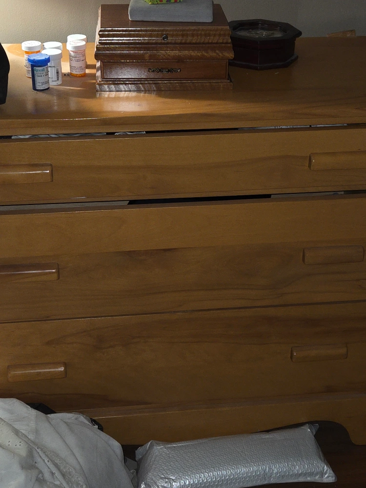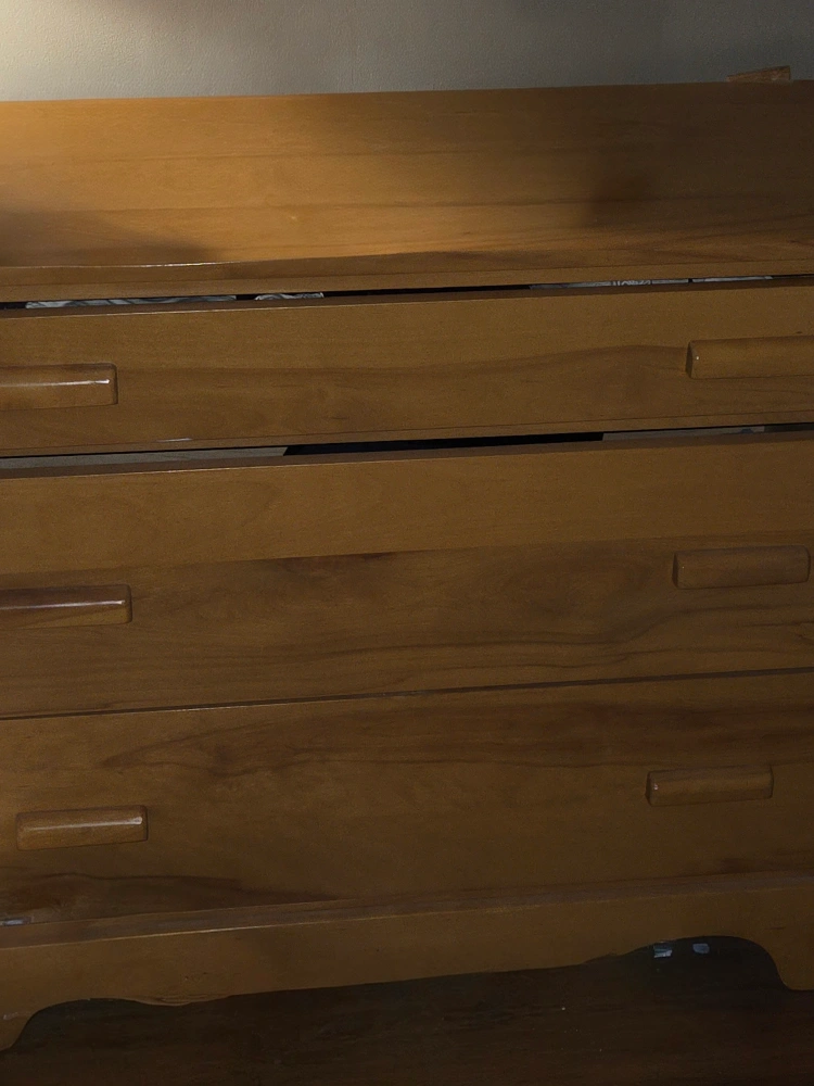 Selling a wooden dresser with three drawers and mirror. It's a great piece for adding storage to any room in your home. The dresser is in good condition and ready for a new home! Measurements 35 inches high 37 inches width 19 inches deep Will accept reasonable offers CASH ONLY PLEASE Contact Alanna 403 540-9984