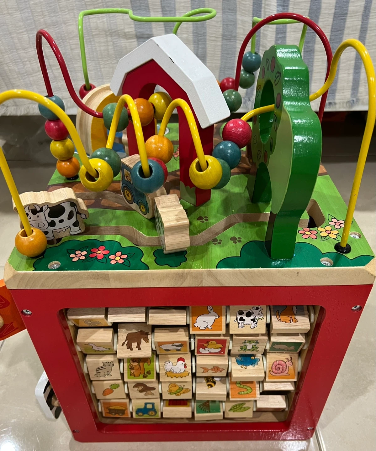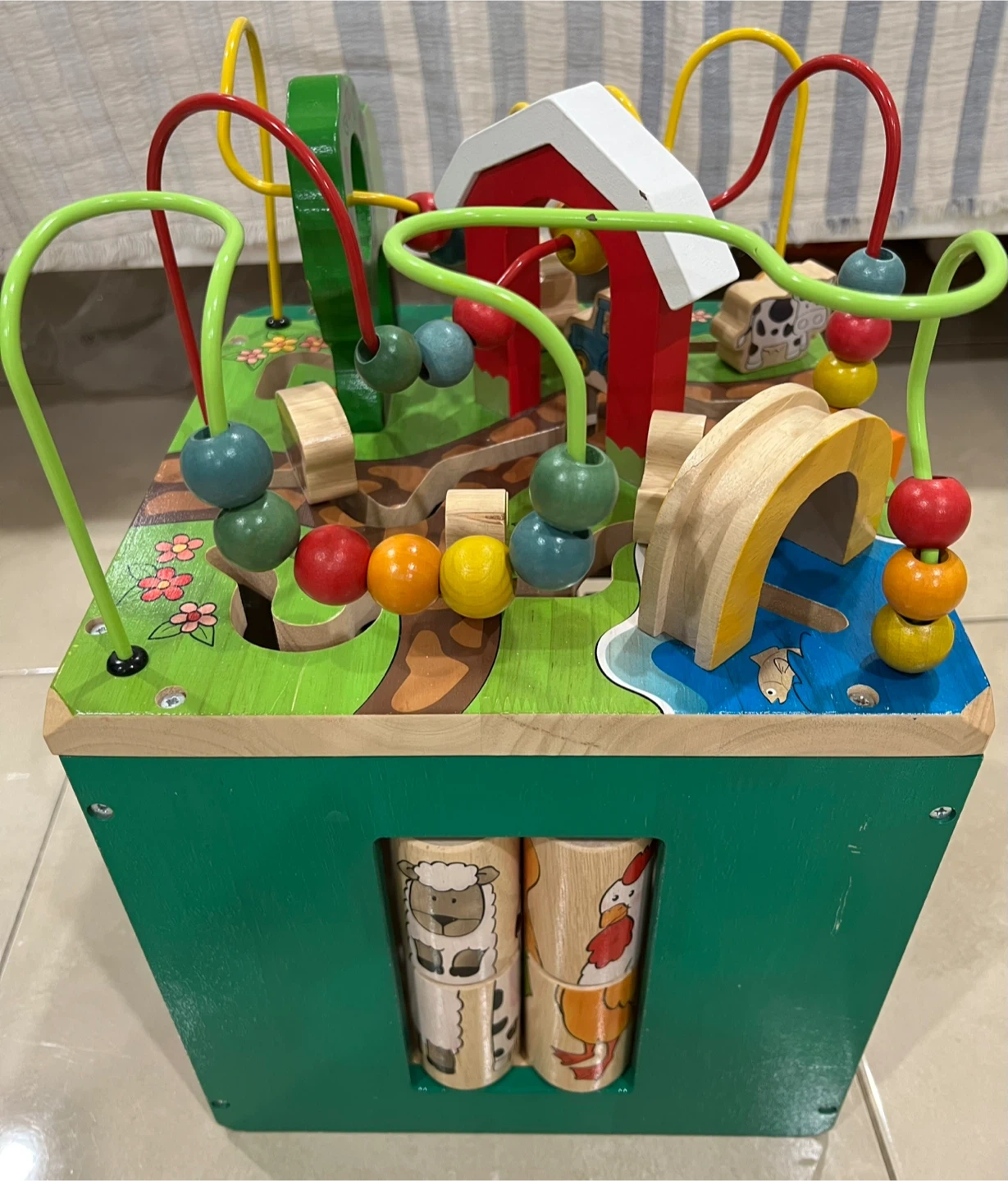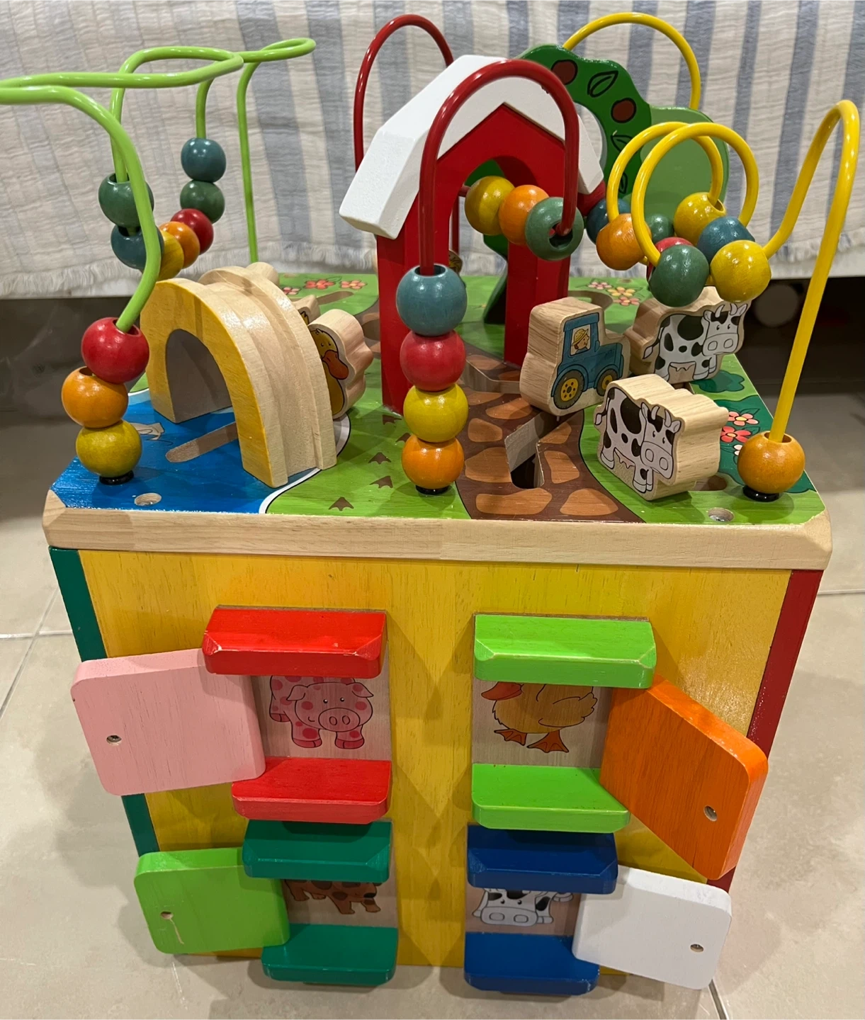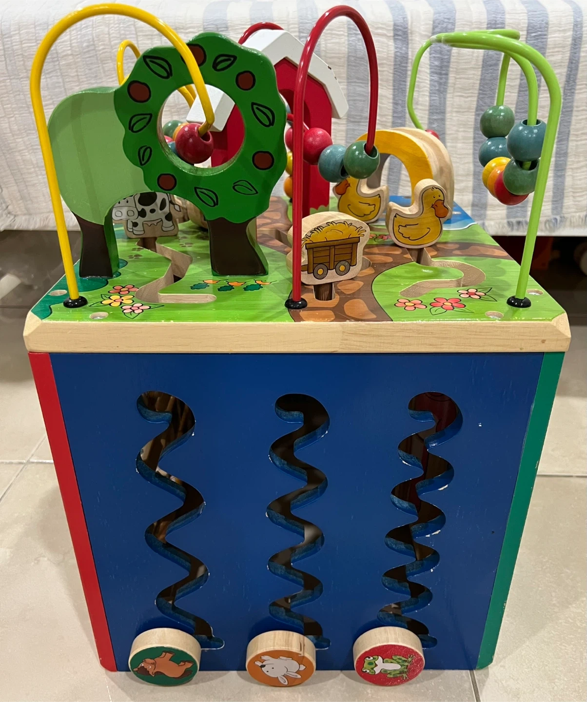 40- A fun wooden activity cube for kids! It features a farm theme with various activities on each side. - It's in great condition and ready for a new home! - From non-smoking and pet free household Pick up only near Renfrew St and E 8th Ave Cash only please