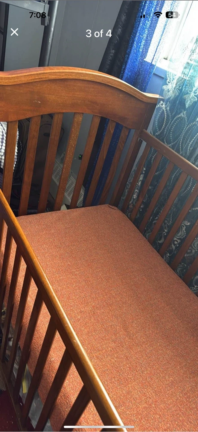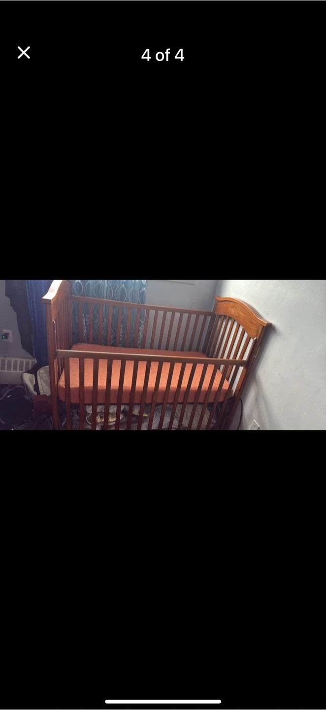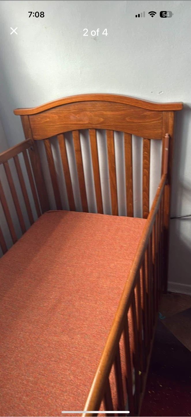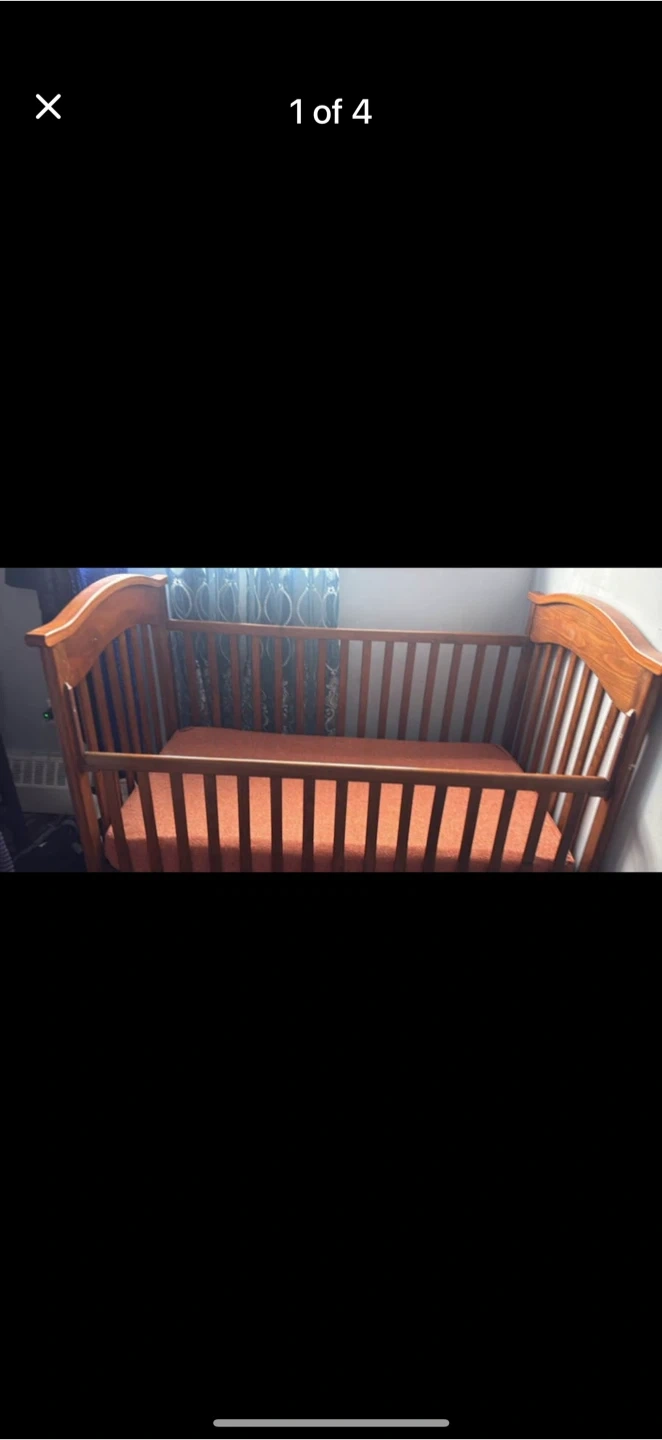 Selling a gently used wooden baby crib. It's in good condition and ready for a new home. The crib comes with a mattress.
