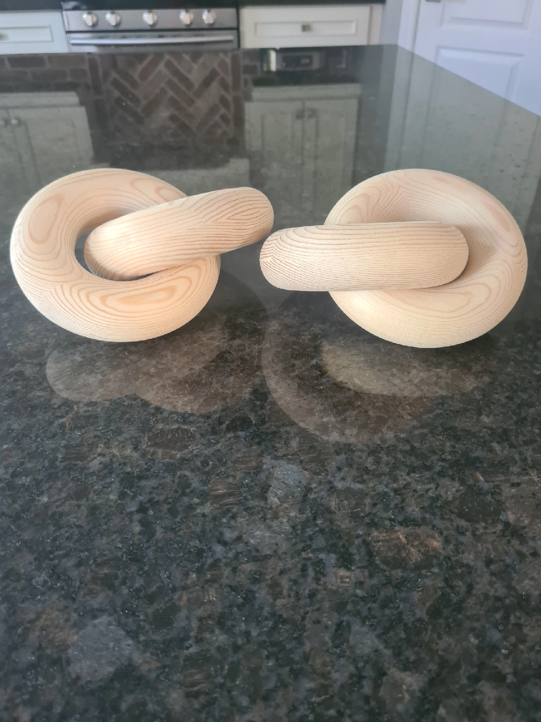 10Add a touch of rustic charm to your home with this wooden chain link decor! Perfect for styling shelves, coffee tables, or mantels. It's in great condition and ready to find a new home