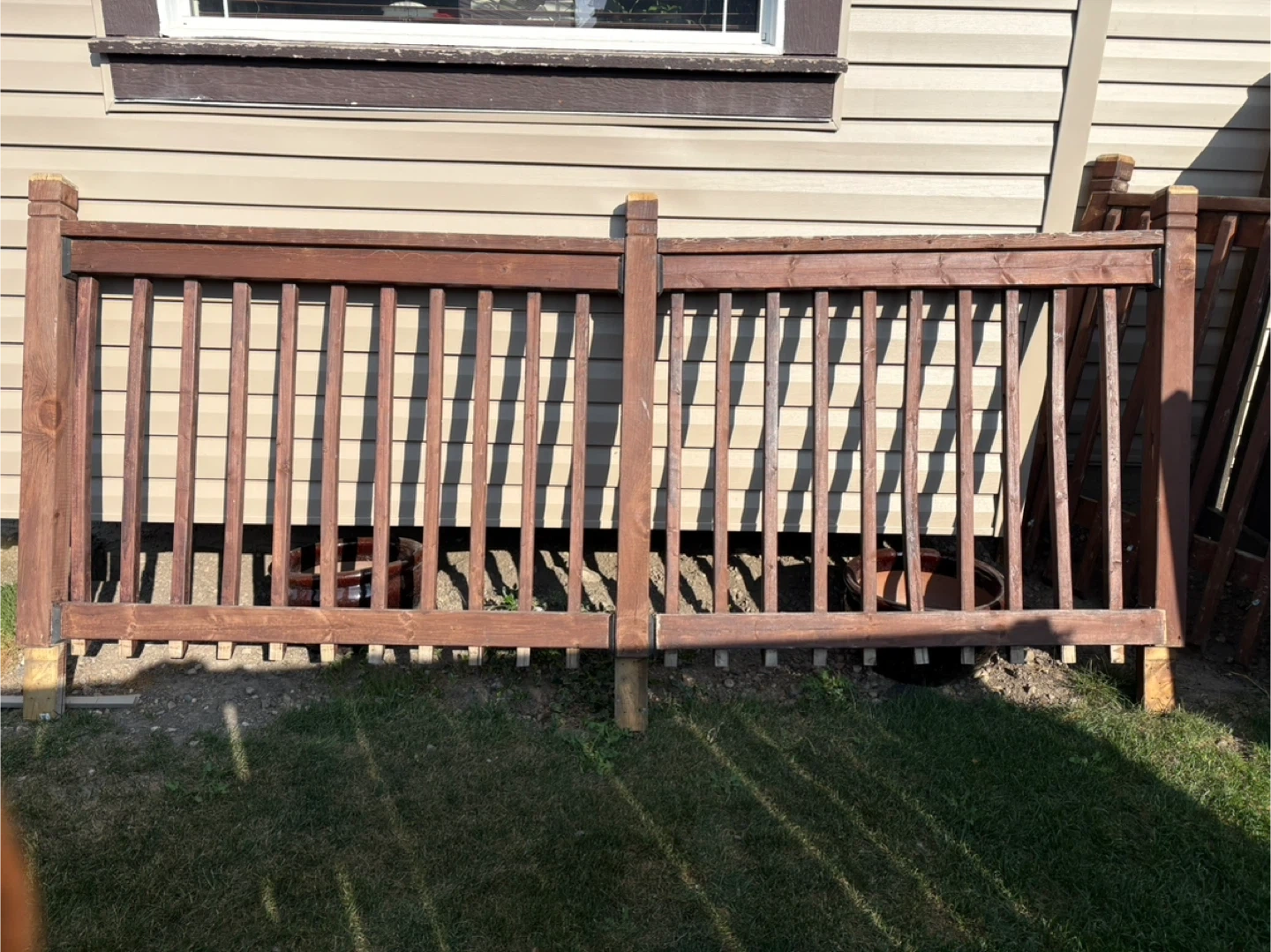 44Selling two sections of wooden deck railing. They're in good condition and ready to be installed. 116” long x 54.5” tall. As is, pick up only.