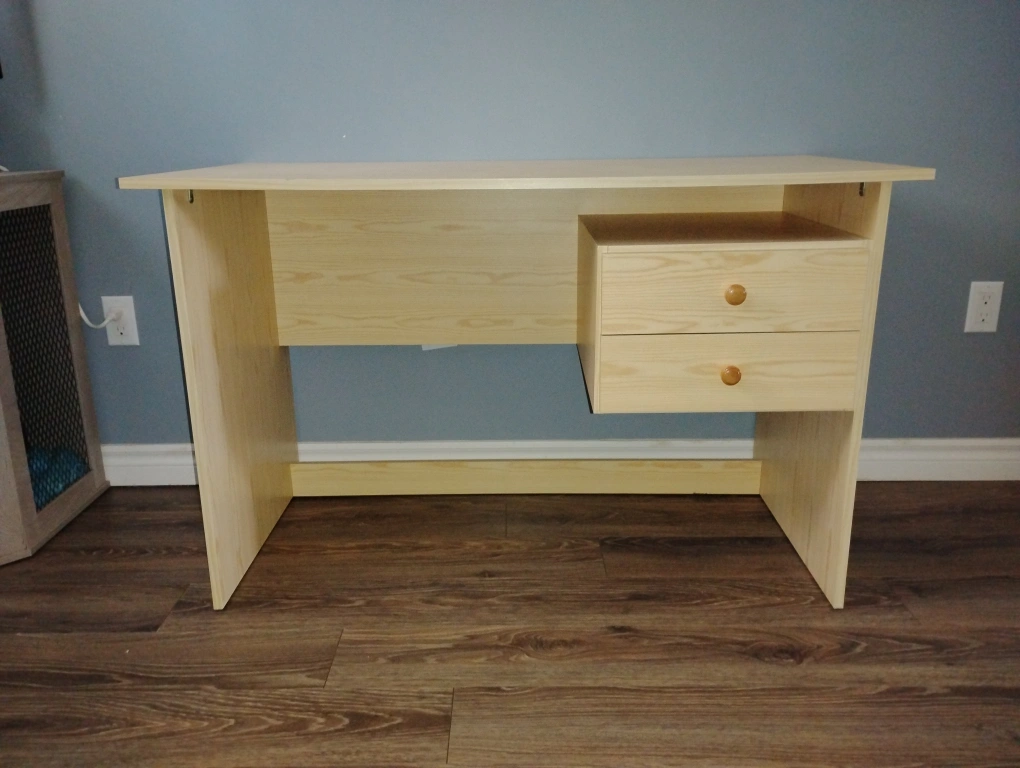 Selling a wooden desk that would be great for a home office or student. It features two drawers for storage. The desk is in excellent condition and ready for a new home! Solid and sturdy. Definitely need two people to carry it. pick up in hespeler Cash only smoke free home