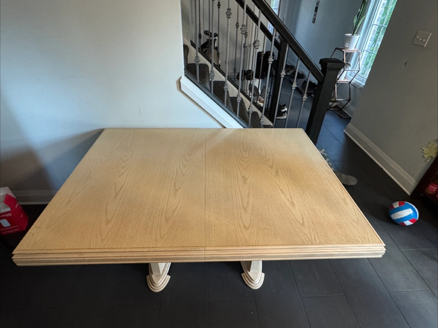 96Selling a wooden dining table. It's in great condition and ready for a new home! Perfect for family dinners or gatherings with friends. It's a sturdy and stylish addition to any dining room