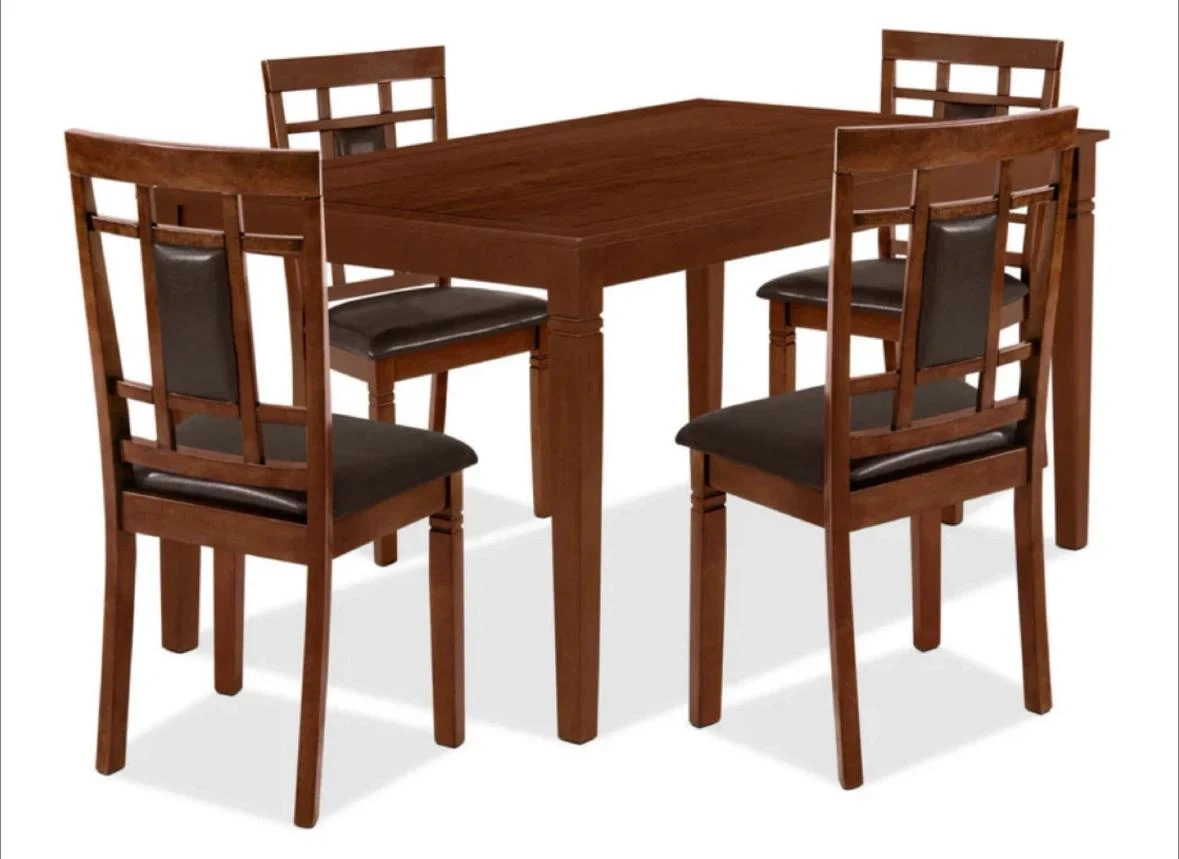 10This lovely wooden dining table comes with four matching chairs. The set is in great condition and would look fantastic in any dining room or kitchen. The chairs have comfortable seats, perfect for family dinners or entertaining guests. It's a stylish and functional addition to your home!