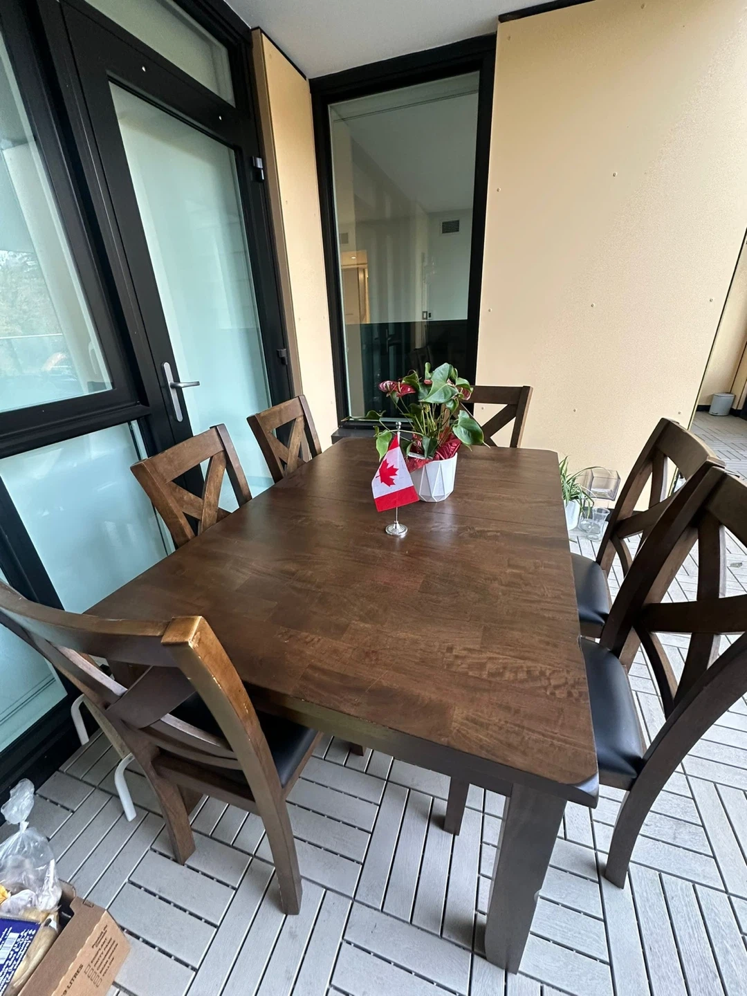 10Selling a lovely wooden dining table that comes with six chairs. It's perfect for family dinners or gatherings with friends. The set is in good condition and ready to be the centrepiece of your dining area!