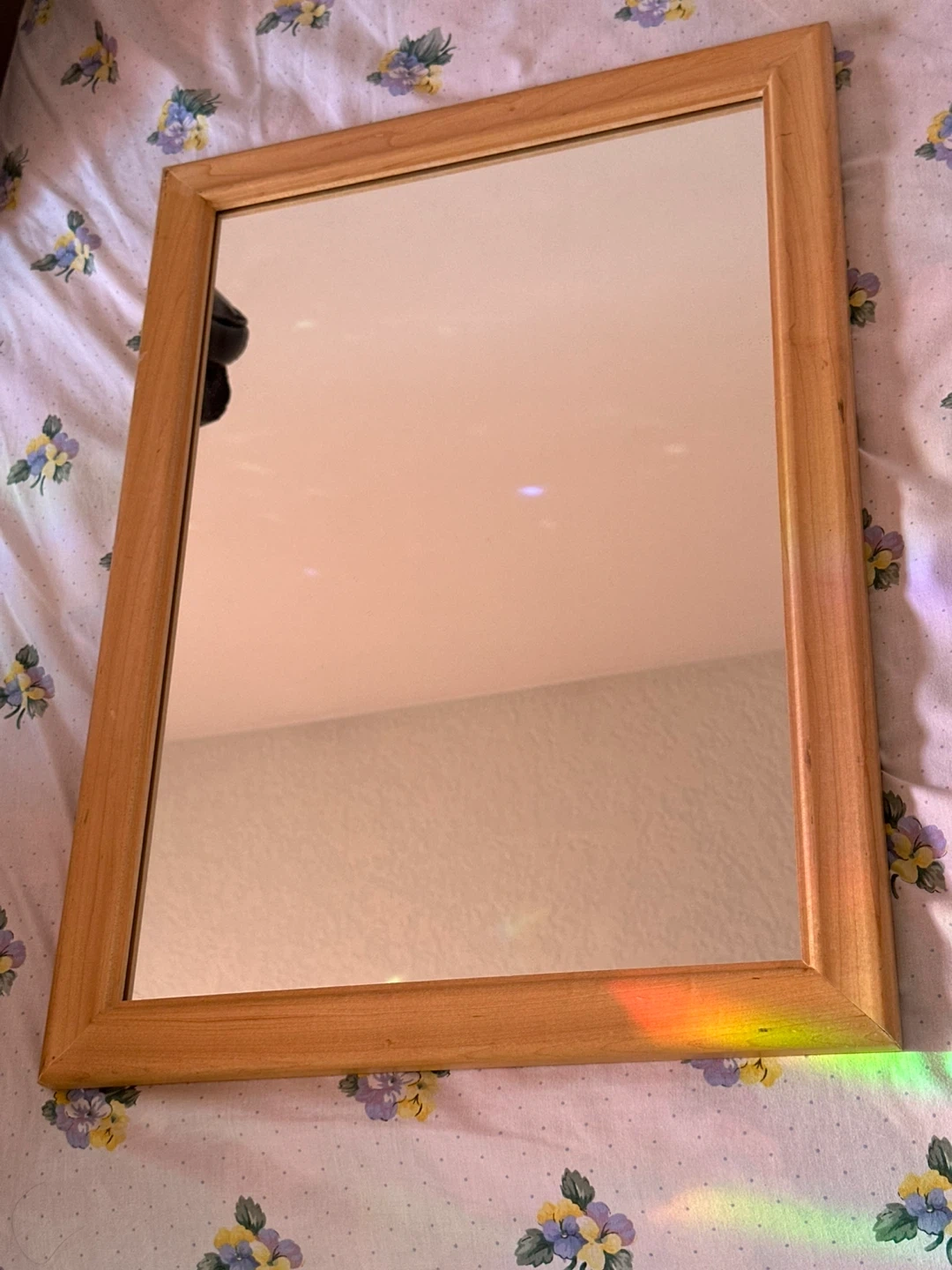 24Selling a lovely wooden framed mirror! It's in great condition and would look great in any room. The frame has a nice, natural wood finish $30 fcfs