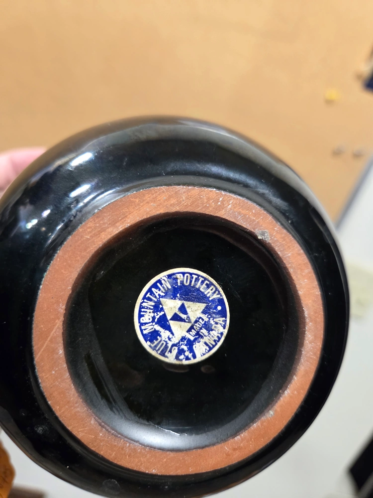 Wooden Framed Mirror & Blue Mountain Pottery vases