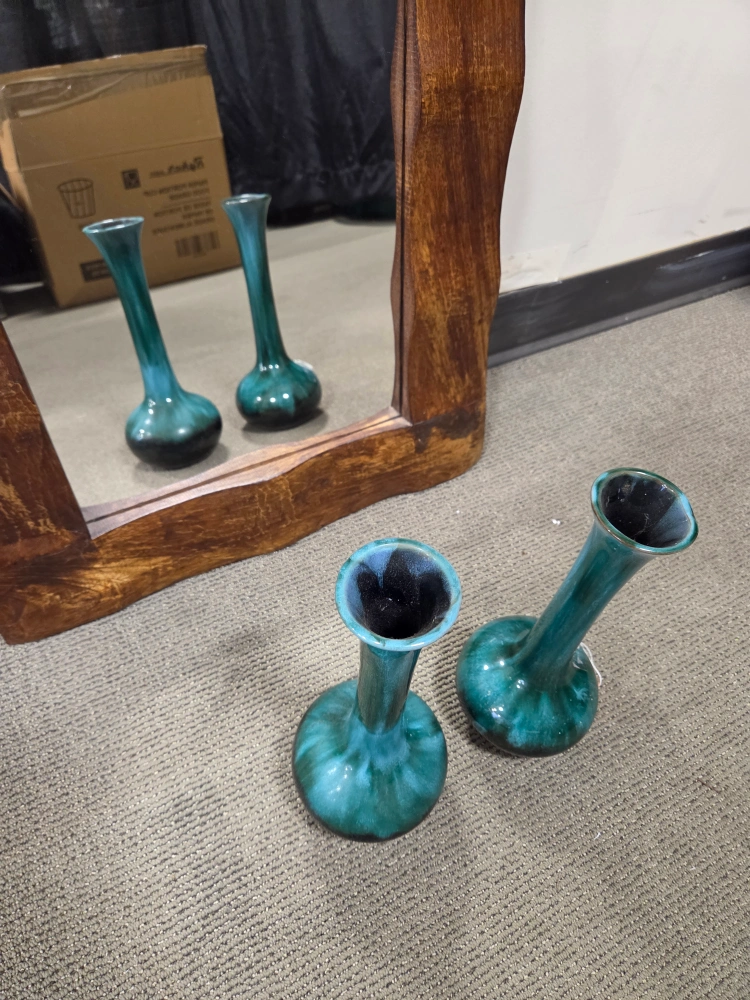 213Selling a wooden framed mirror and a pair of green vases. The mirror has a unique, rustic wooden frame and wire ready to hang. The vases are a lovely shade of green. Perfect for adding a touch of style to your home! price listed is for EITHER the mirror or the pair of vases. take both and I will discount a little more ! Must pickup. Please. no etransfer or long holds. this is a cash price. bring cash. This is in storage and I will meet you there. I can access the building during 8 to 430 Monday to Friday. No one is there outside of those times.