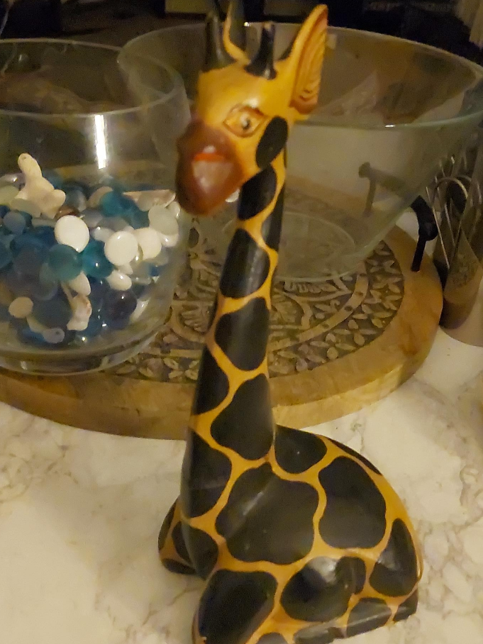 Cute wooden giraffe figurine! It's in great shape and would look adorable on a shelf or desk