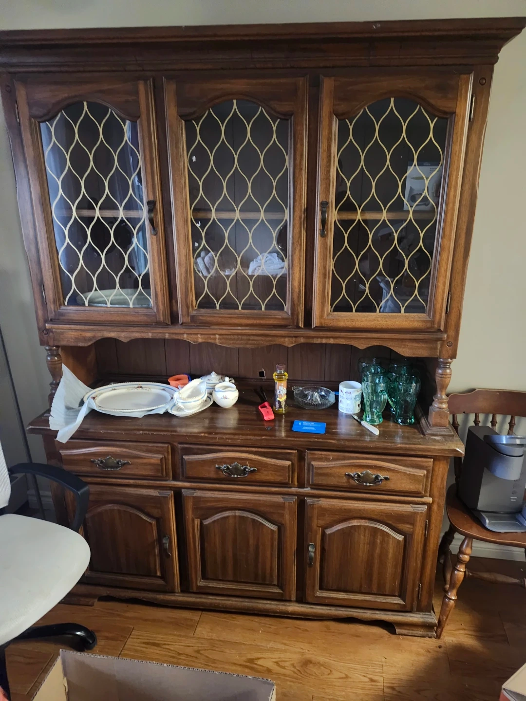 10Selling a beautiful wooden hutch with glass doors! It's a lovely piece for displaying your favourite items or storing your dining essentials. The hutch features a classic design and is in good condition. Please excuse the clutter im in the middle of moving.
