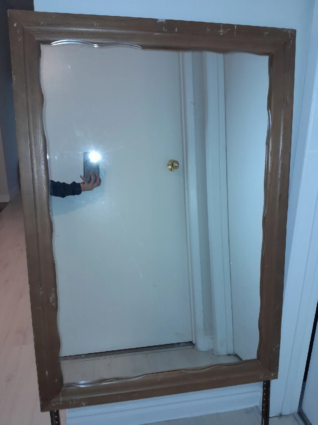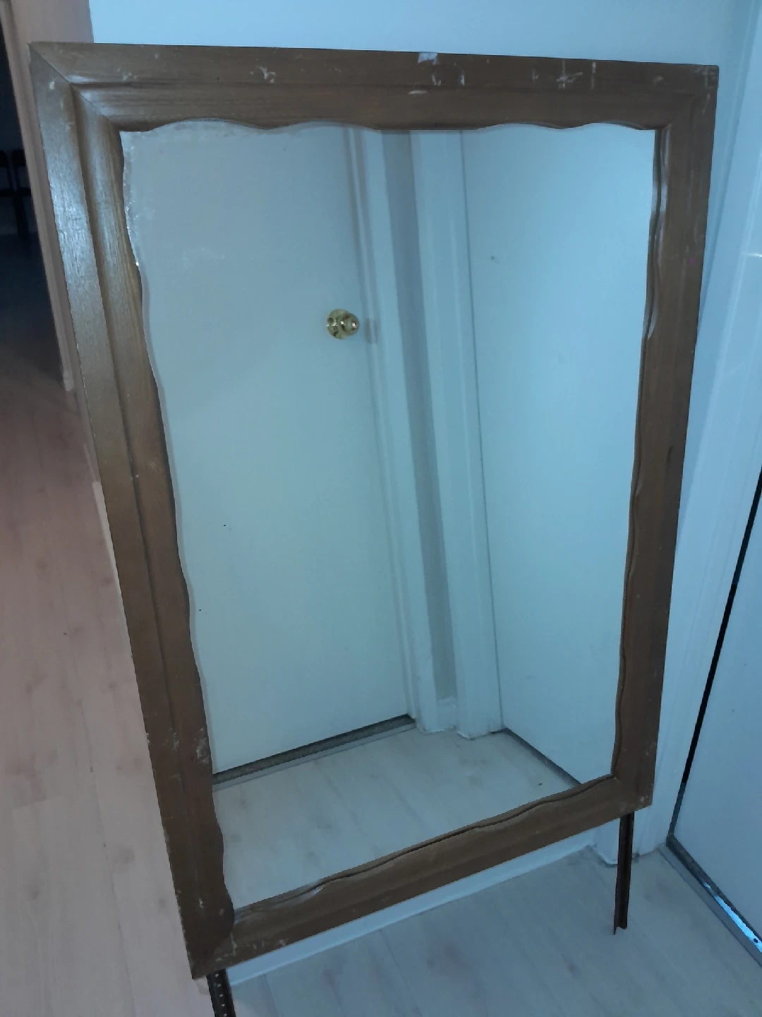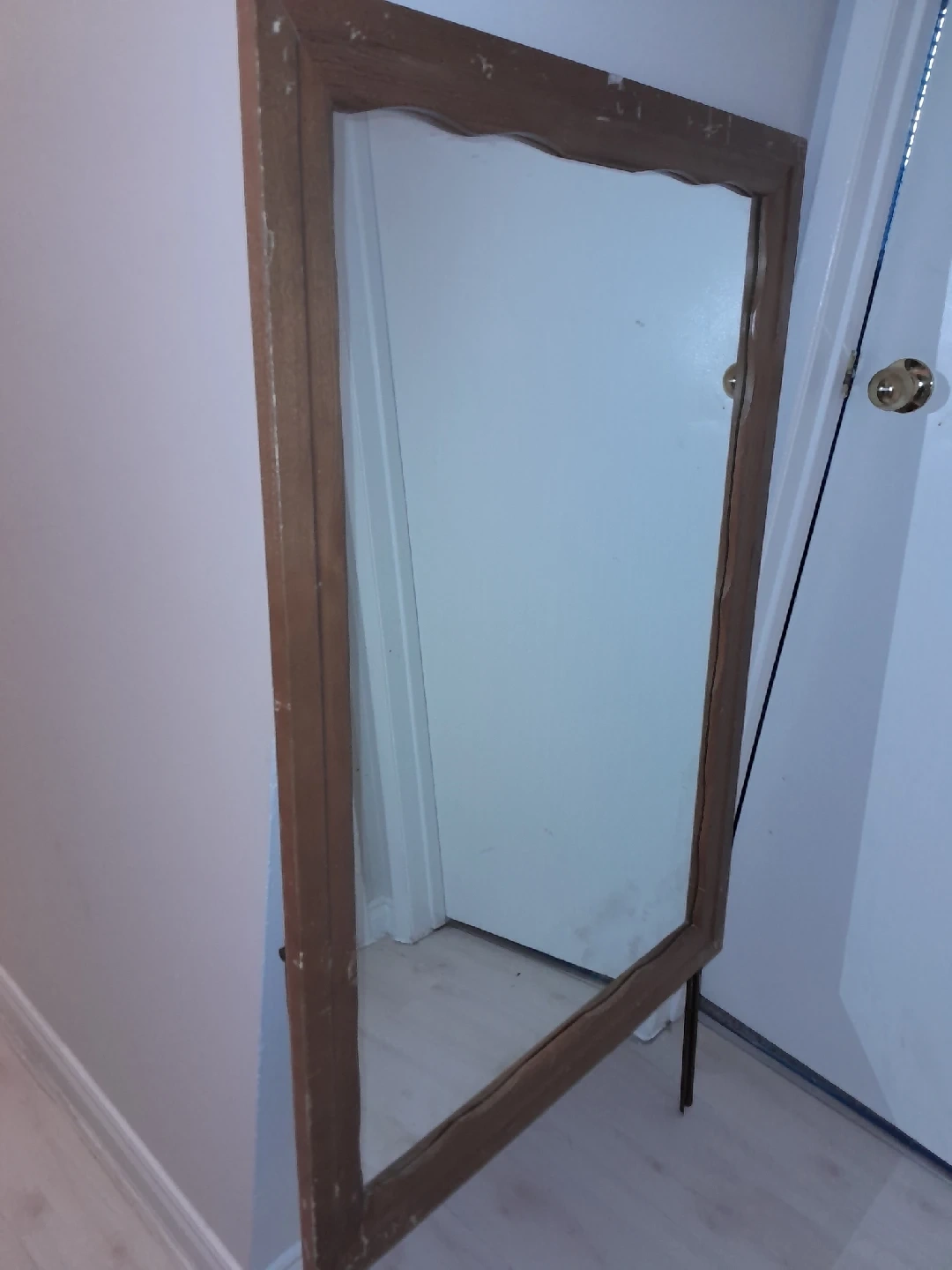 Selling a charming wooden standing mirror with a wooden frame. Both items show some signs of wear, adding to their vintage appeal. Great for adding character to any room!