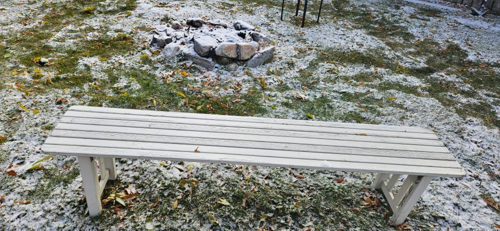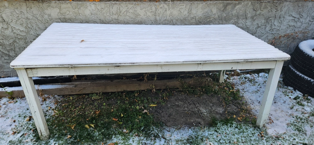 Selling 2 wooden outdoor bench and Table. It's perfect for adding extra seating to your backyard, patio, or garden. It's sturdy and in good condition! Needs a paint job