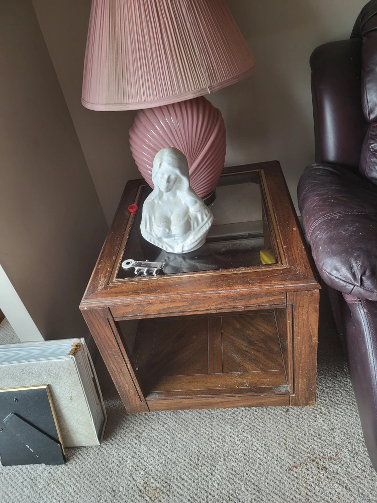 30A classic wooden side table. Features a glass top. The bottom of the table contains a shelf. A perfect addition to a room where you can enjoy a cup of tea and your favourite book.
