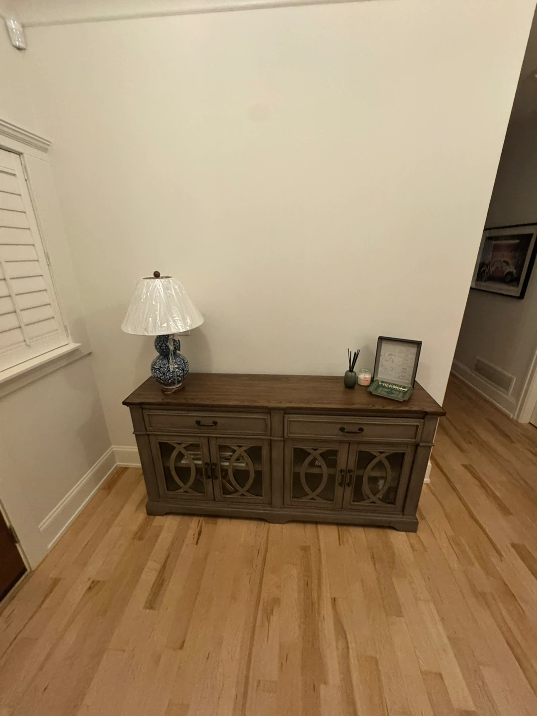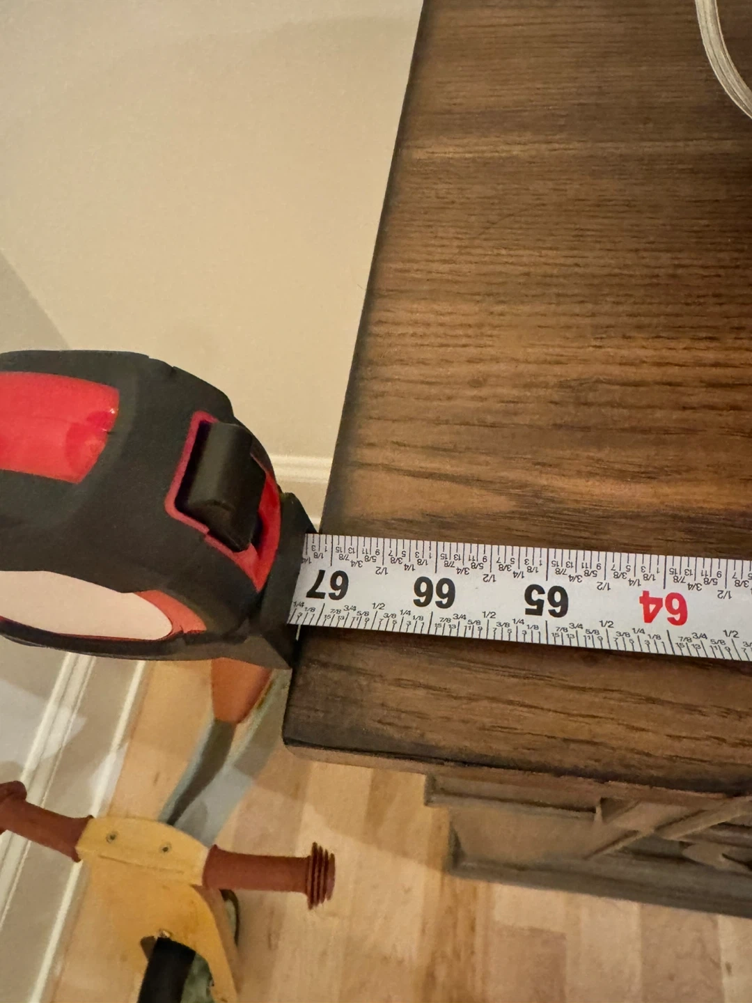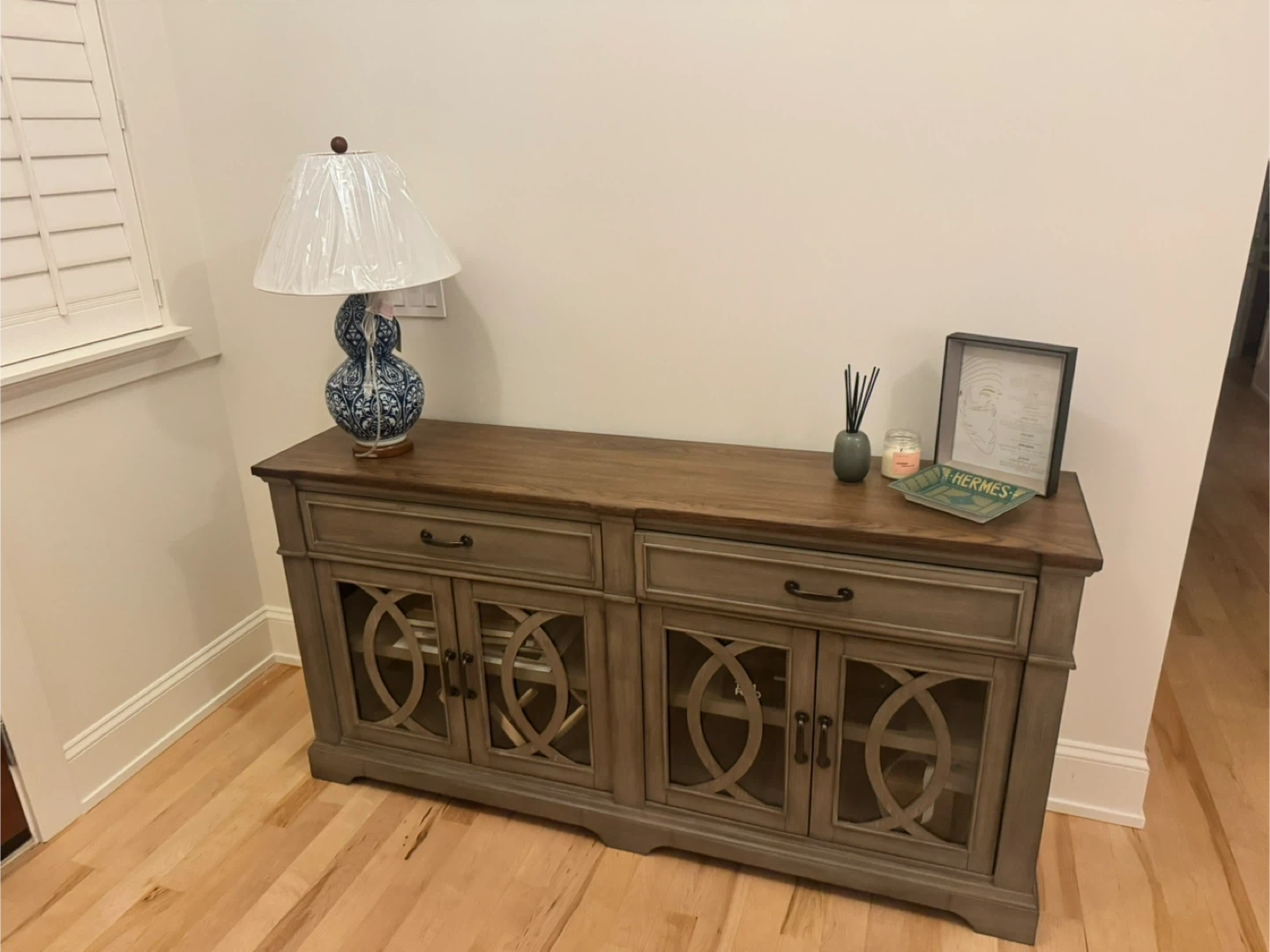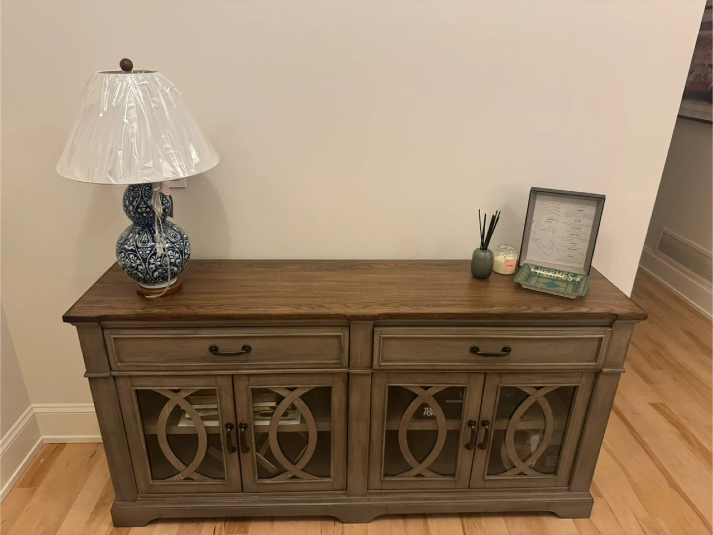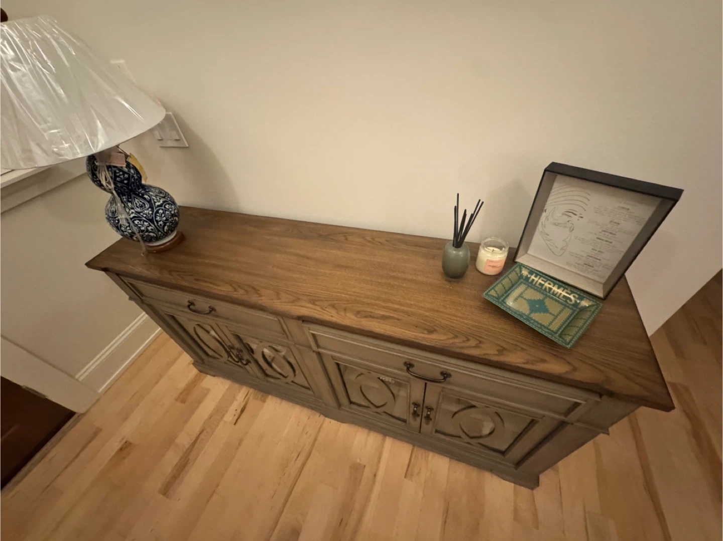 Selling a wooden sideboard. The top measures approximately 67 inches across, 16 feet wide and 33 inches tall.. Great adding storage and style to your living/dining space. We have Ben using it as an entrance table.
