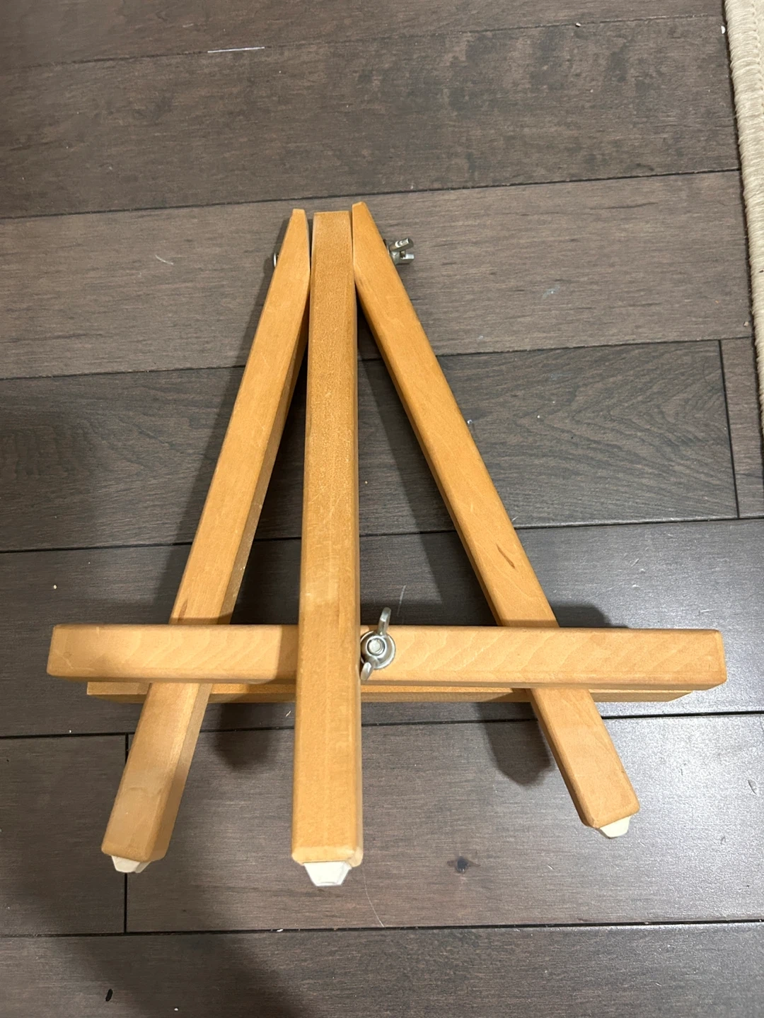 181Here's a cute little wooden easel, perfect for displaying artwork or photos on a desk or table. It's in great shape and ready for a new home!