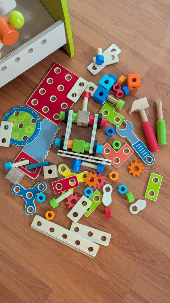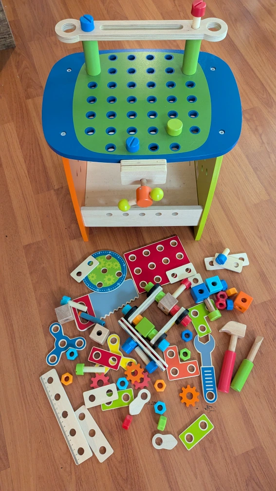 65Selling a wooden tool bench toy set in EUC. It includes various colourful wooden tools and accessories for creative play. Great for kids who love to build and tinker! Bought on amazon for $55 a few years ago. Approx dimension of table bench: D: 12", H : 14" and W: 12.5" contactless collection from Tsawwassen. from NS/DF home. prompt pickup preferred. thanks for looking