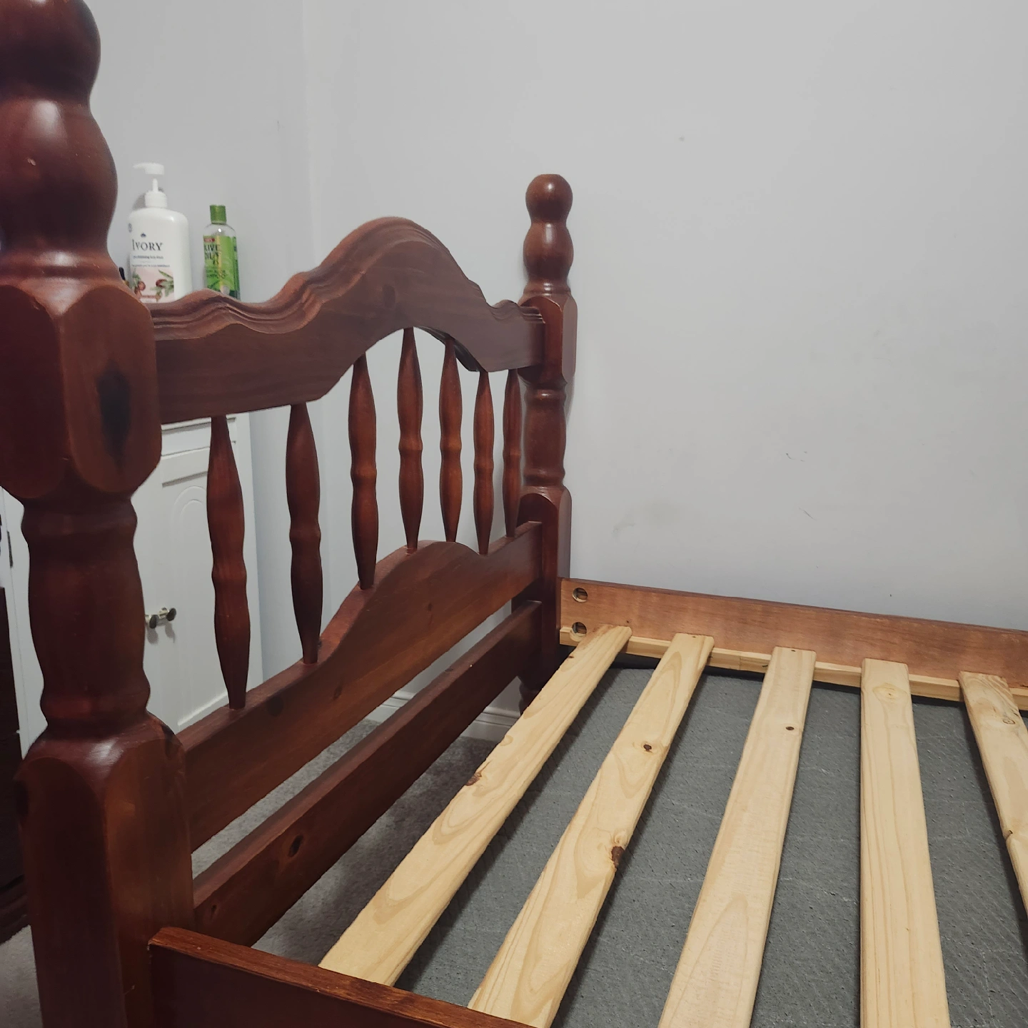 Selling a wooden twin bed frame. It's in great shape and ready for a new home! Perfect for a kid's room or a guest room