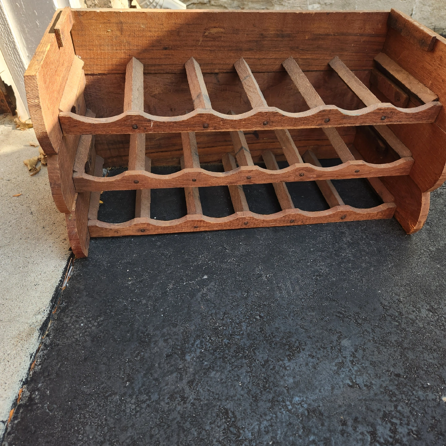 Selling a wooden wine rack. It's in good condition and ready to hold your favourite bottles. Perfect for a small collection or to add a rustic touch to your home bar. 3 individual peices that stack together