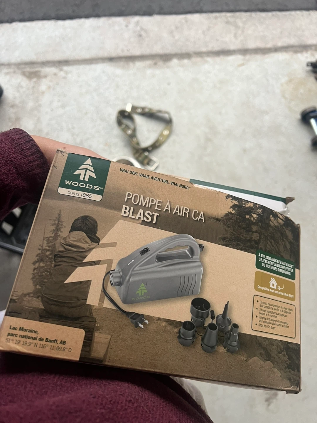 16Selling a Woods Pompe À Air CA Blast! It's designed for use with small to medium-sized inflatable mattresses and objects. It's compatible with a 120V AC outlet and features a low-pressure, high-volume pump capable of both inflating and deflating. It also comes with 5 nozzles that adapt to Boston and sleeve valves, a carrying handle, and a switch for easy and comfortable use