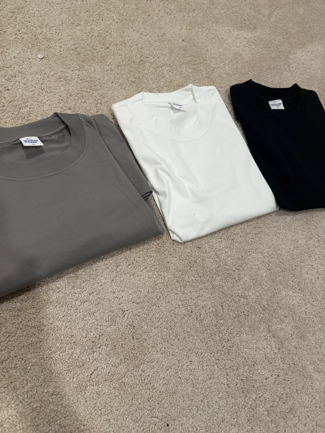 10Selling a set of Woolen Maker T-shirts in size medium. There are three colours: black, white, and grey. They are in great condition! Never worn brand new, usually sells for $70