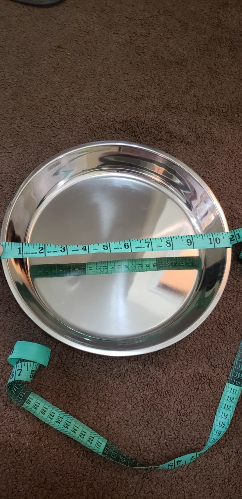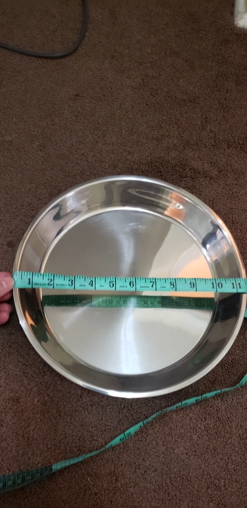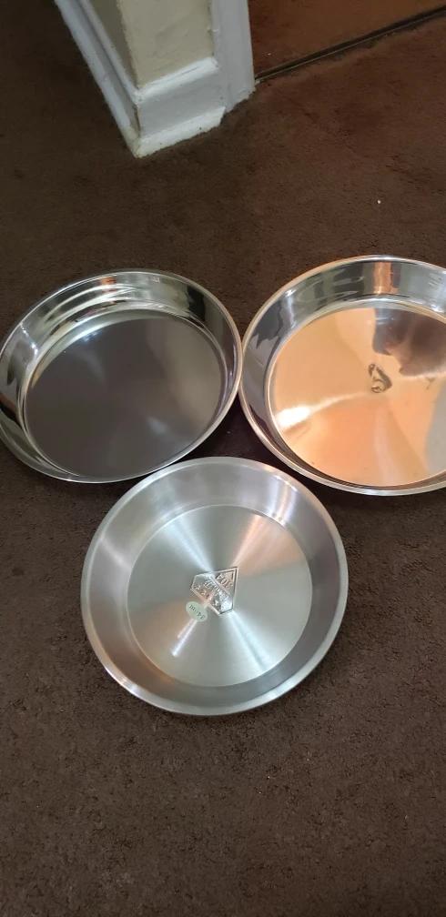 Selling a set of three stainless steel pie plates. They are in great condition and ready for your baking needs! Each plate measures approximately 10 inches in diameter.