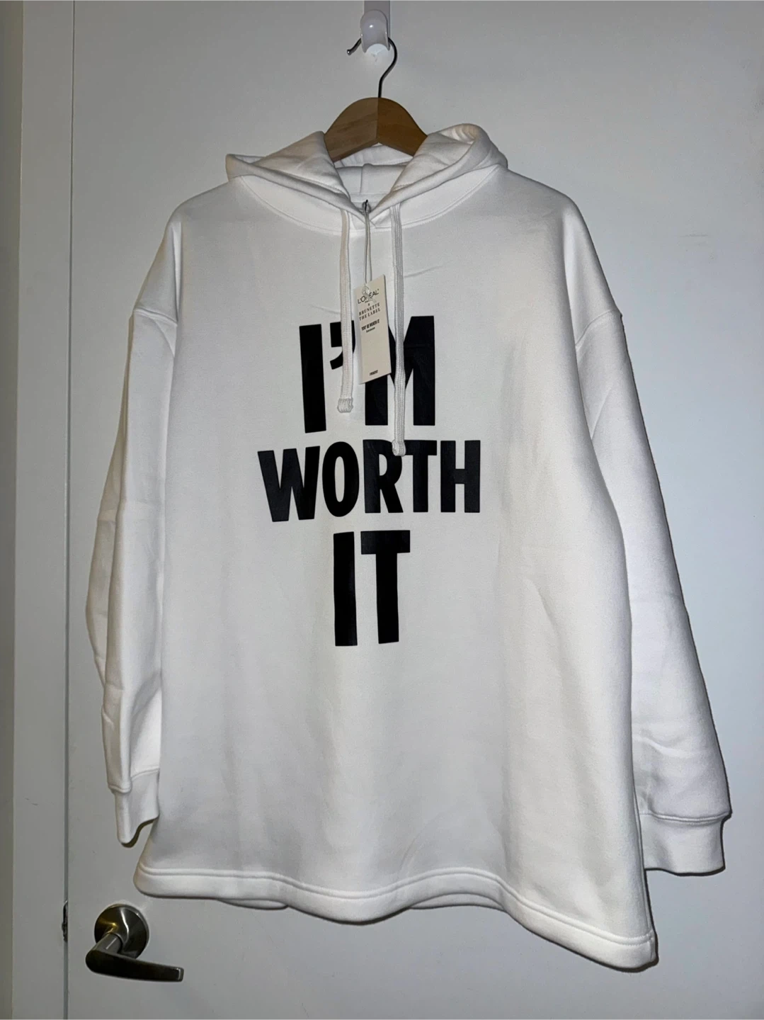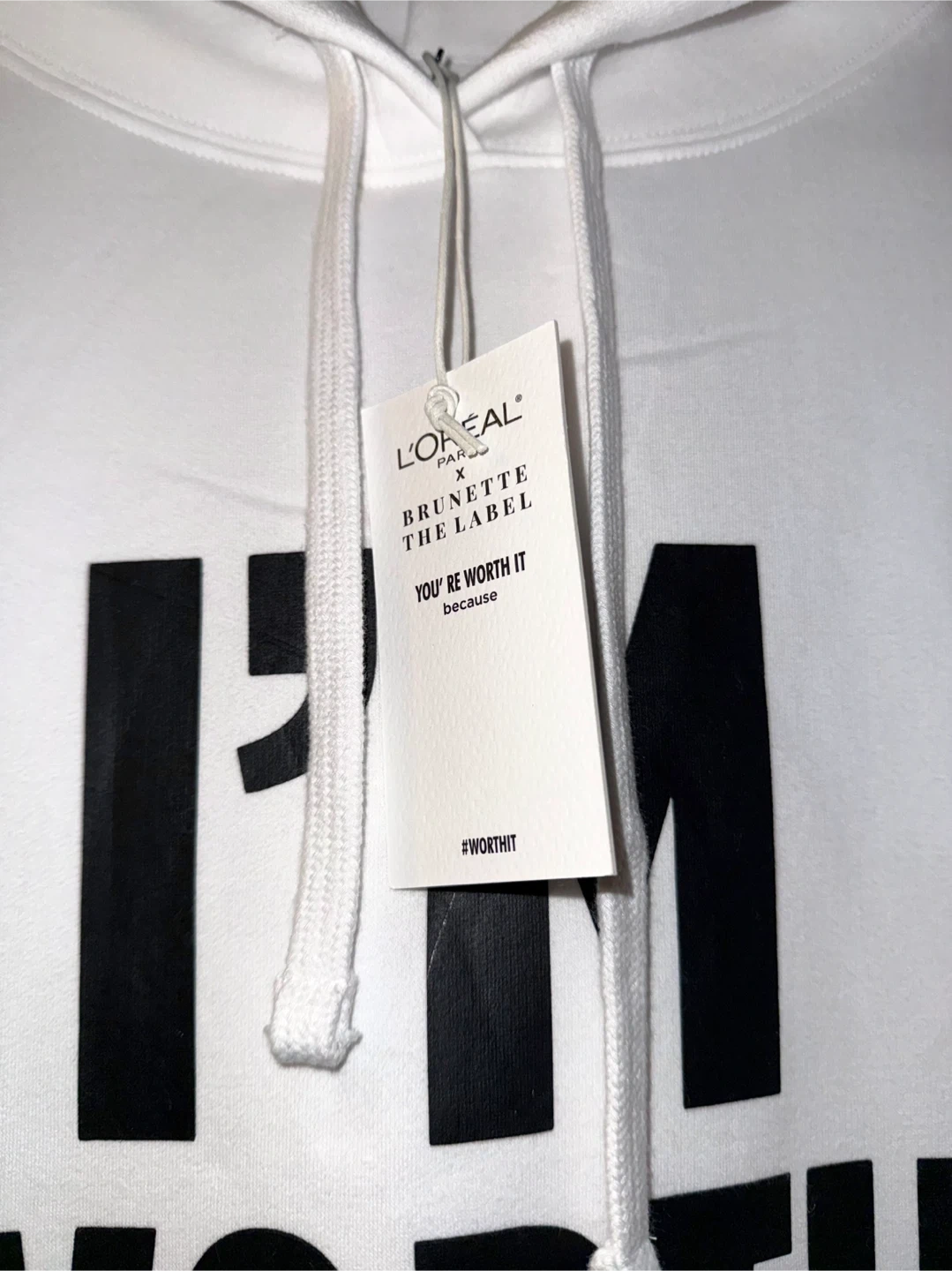 New with Tags + Bag - L’Oréal x Brunette the Label - Sisterhoodie Size XS/S Won during International Women’s Day - Today - March 8th Condition: New with tags, comes in L’Oréal paper bag (pictured) Size: XS/S Baggy Fit, this was the smallest size available. Selling for $40 or best offer. Pick up in Liberty Village. Main intersection is King St W and Dufferin.
