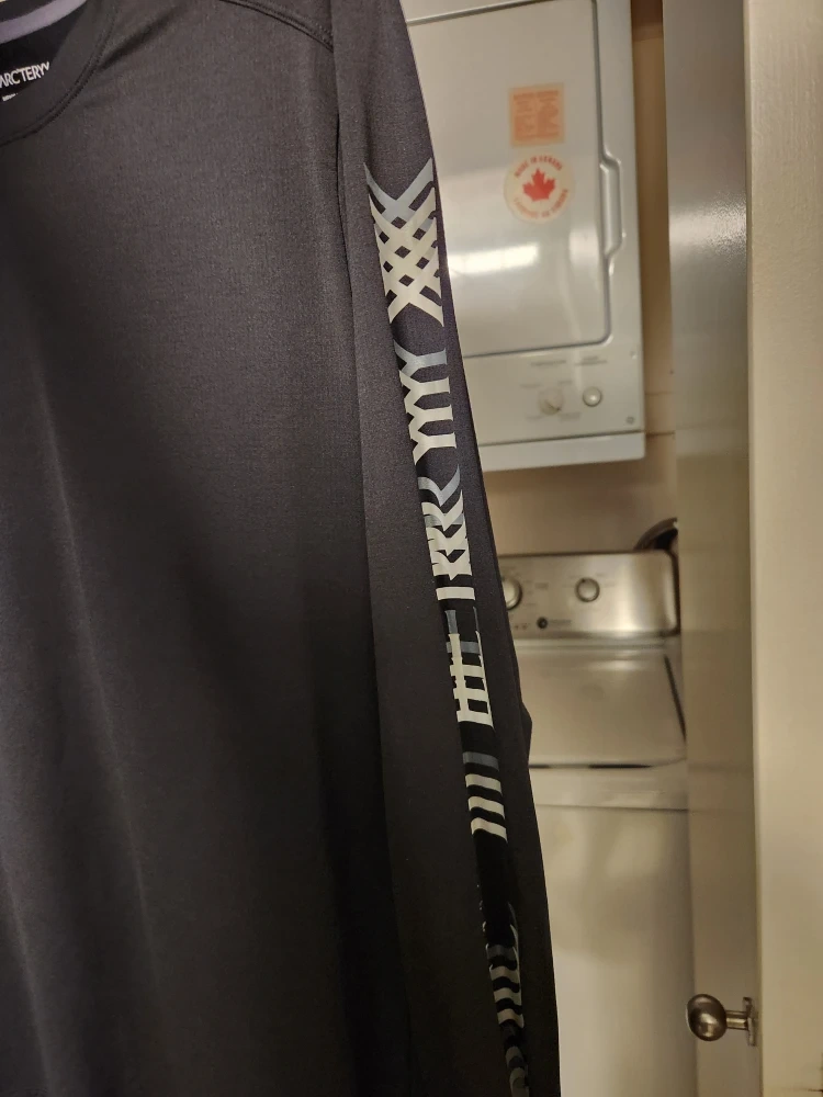 65Selling a once worn Arc'teryx long sleeve shirt! It's in mint condition and ready for a new home. The shirt is black with a unique design on the sleeves, adding a touch of style to your athletic wear. Selling because it doesn't fit me - got it as a gift.