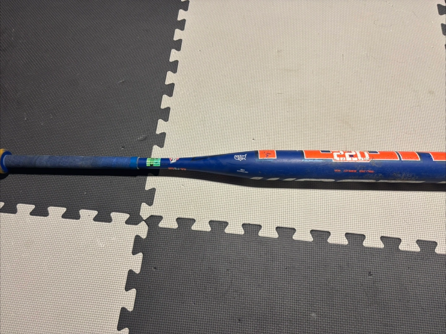 Selling an 220 Bj Fulk bat in blue and orange. It's in used condition, but still has lots of life left! Perfect for practice or games.