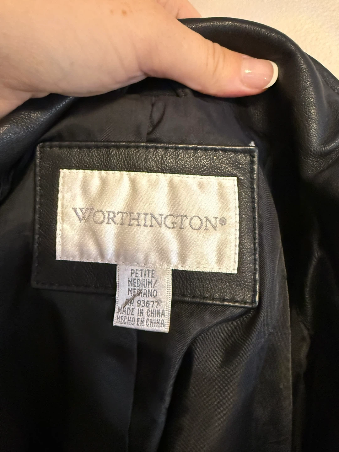 65Selling a classic black leather jacket from Worthington. It's a petite medium size and is in fantastic condition