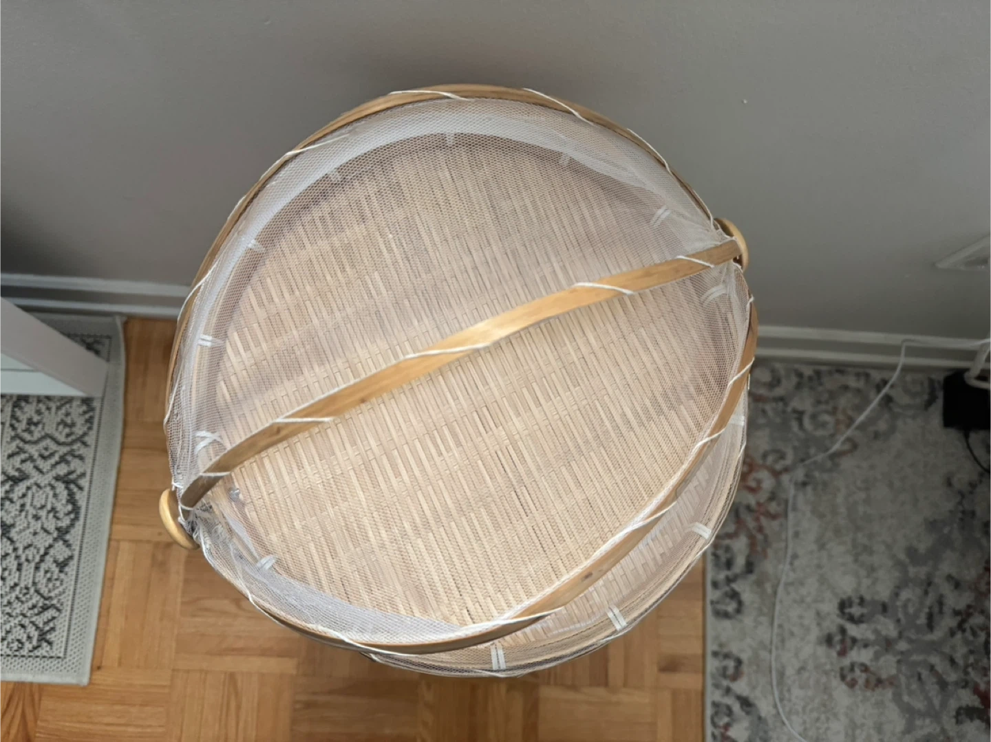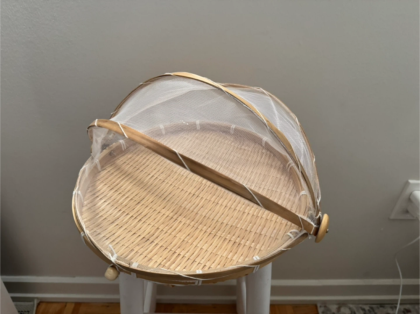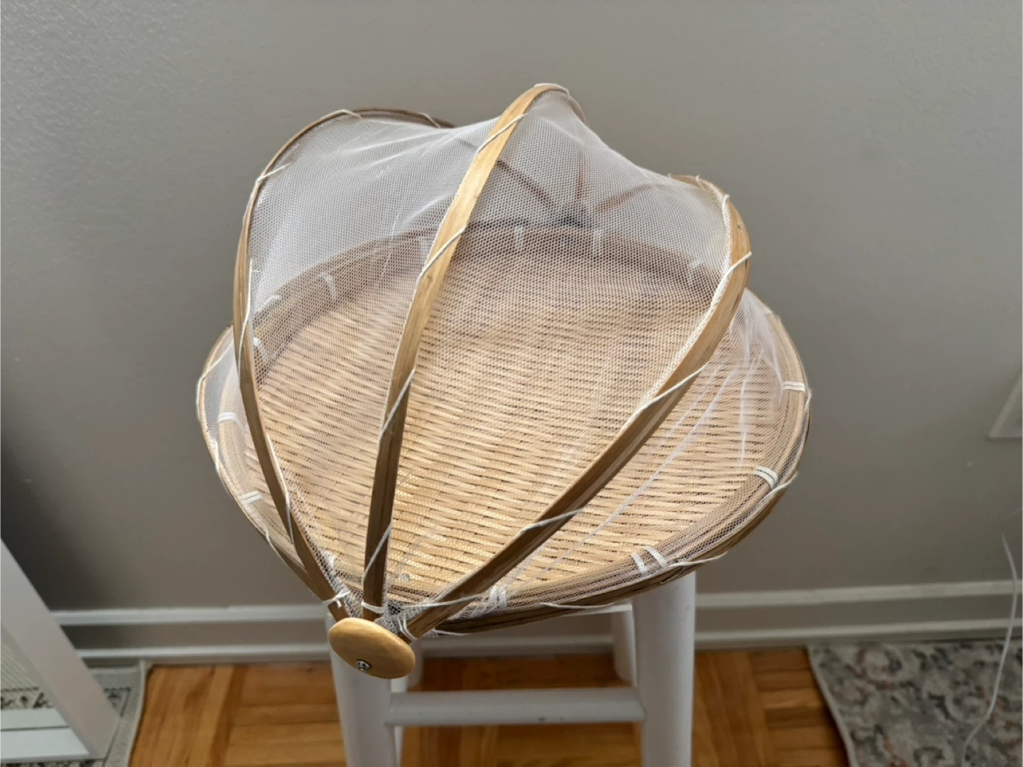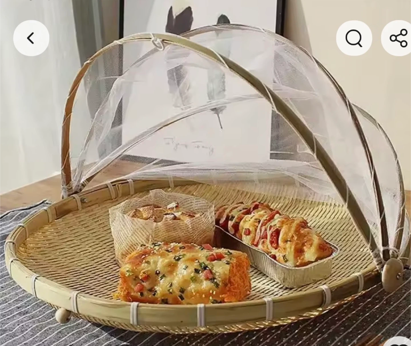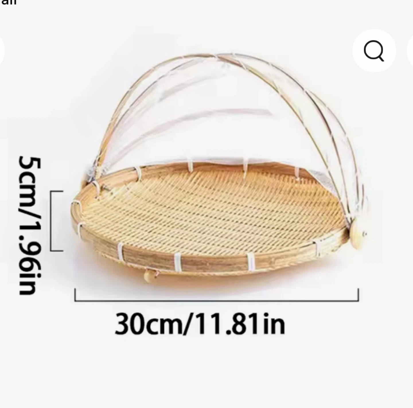 Keep your food fresh and protected with this woven bamboo food cover! It features a net cover to keep out unwanted guests. The diameter is approximately 11.81 inches (30cm), and the height is about 1.96 inches (5cm). Perfect for picnics, BBQs, or just keeping food covered on the counter