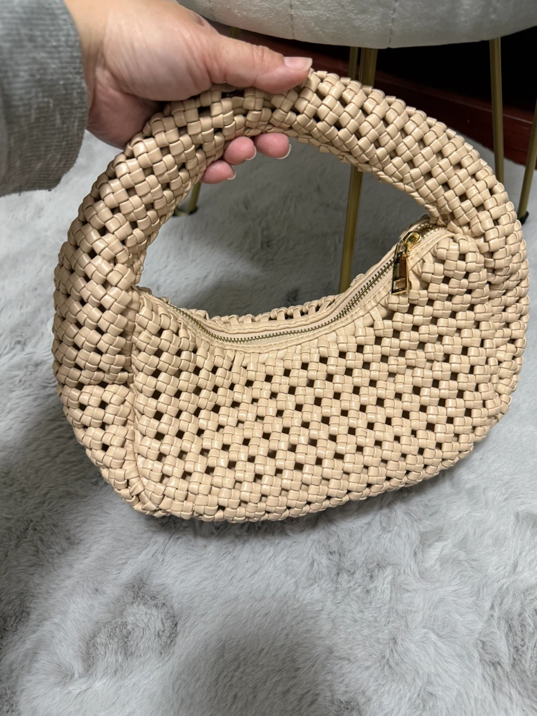 1000+Selling a cute woven handbag in a lovely beige colour! It's in great condition and perfect for adding a touch of texture to your outfit. The zipper works perfectly. It's a great size for everyday essentials!