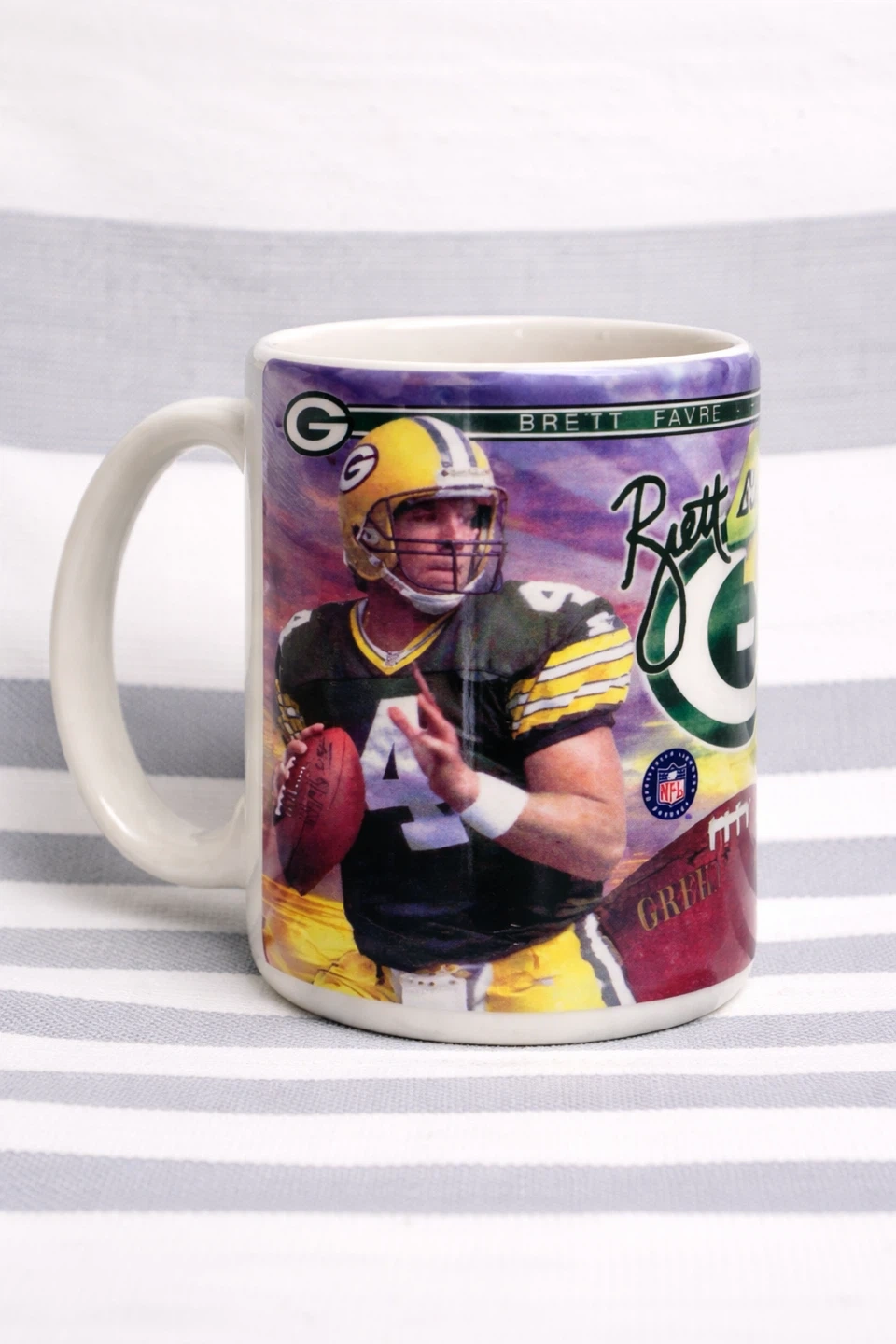 Keywords football mug, sports mug, green bay fan, brett favre, nfl mug, collectible mug, sports memorabilia